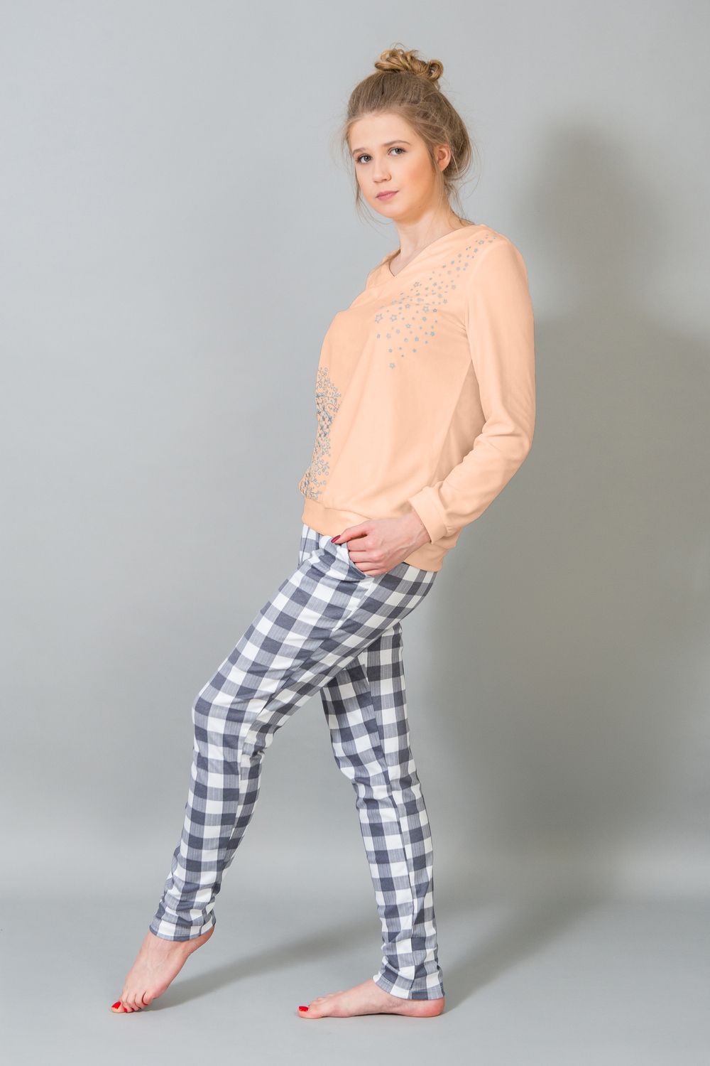 Женский домашний костюм с брюками и кофтой 184 - персиковый