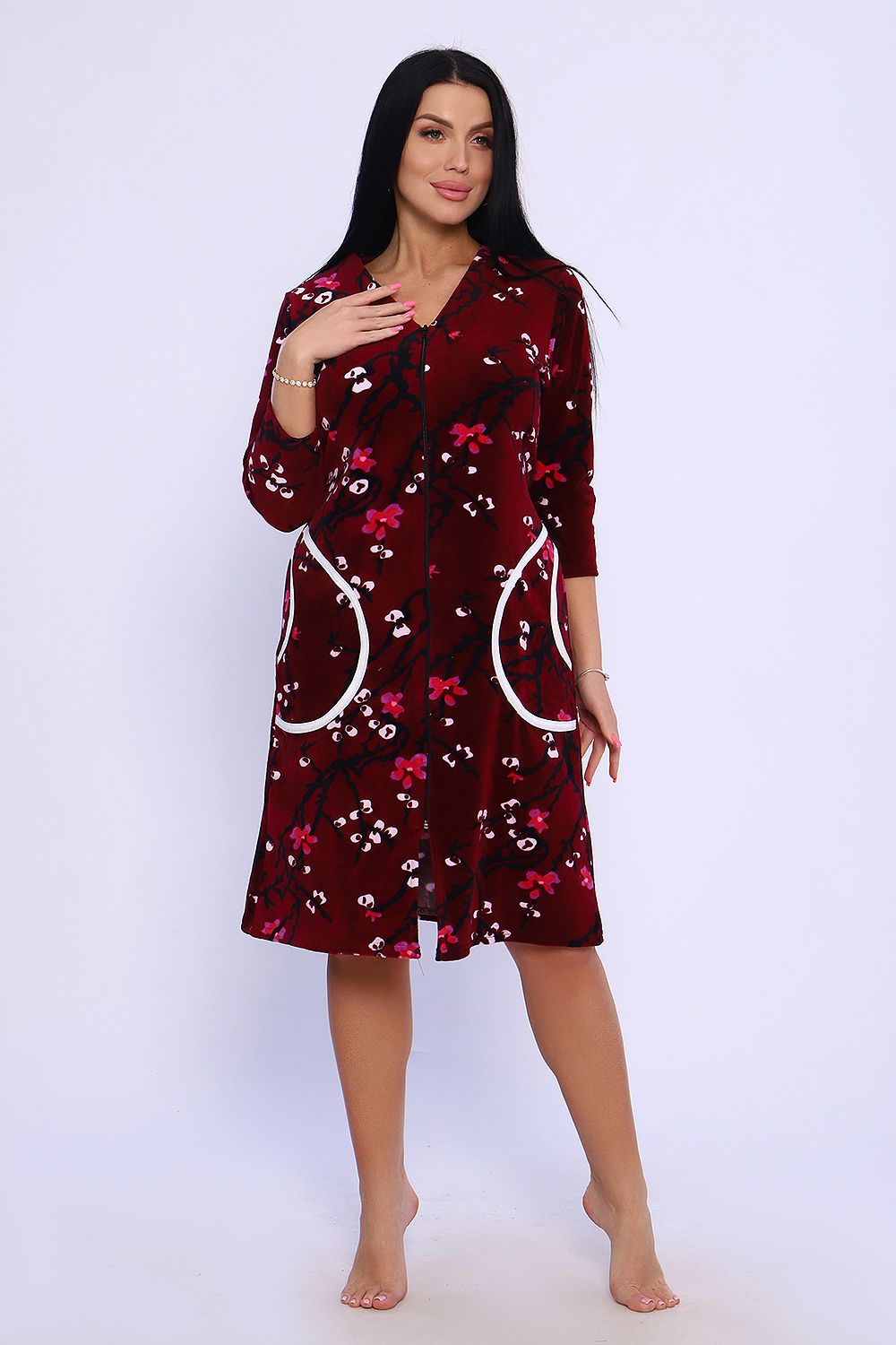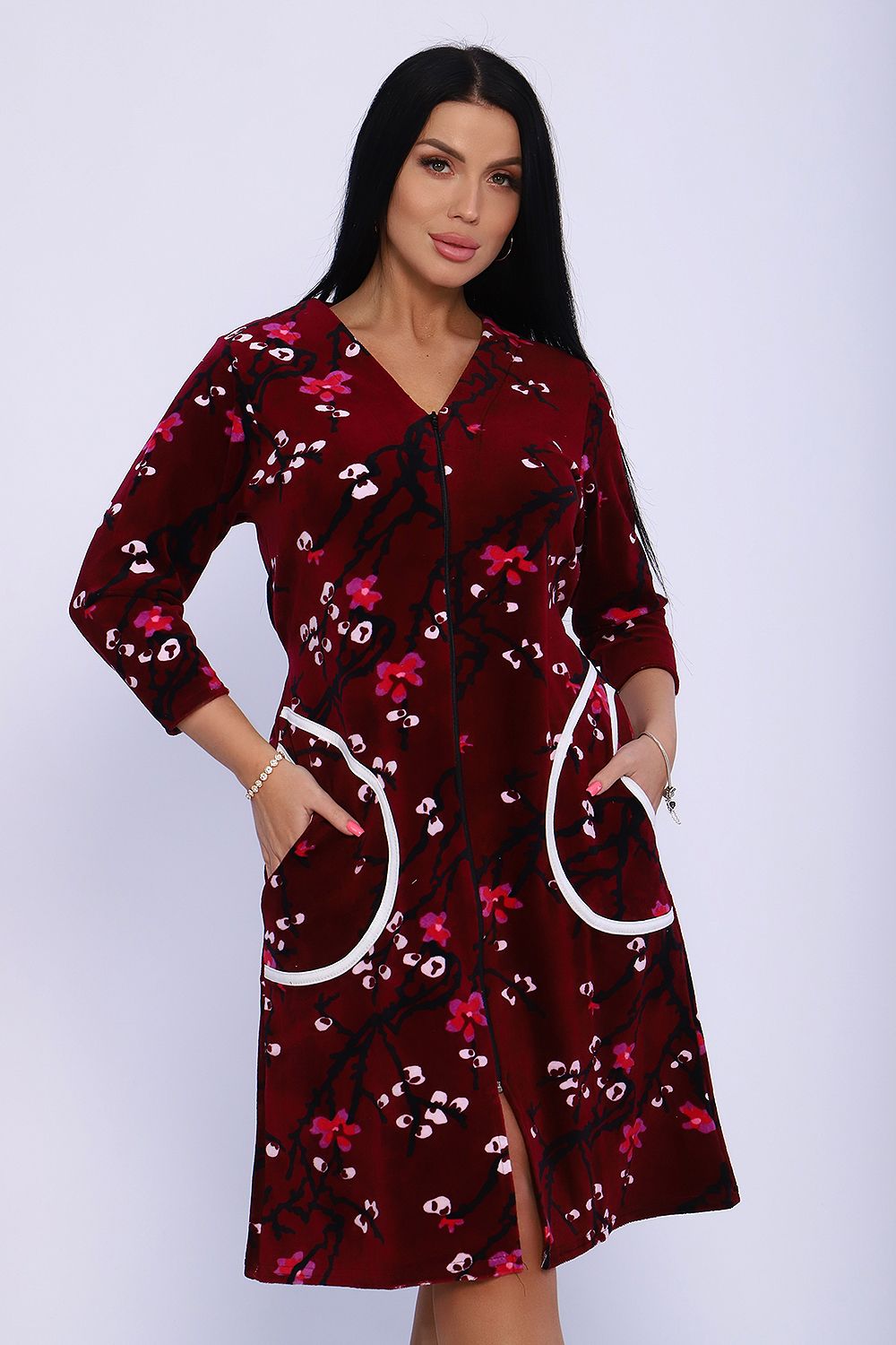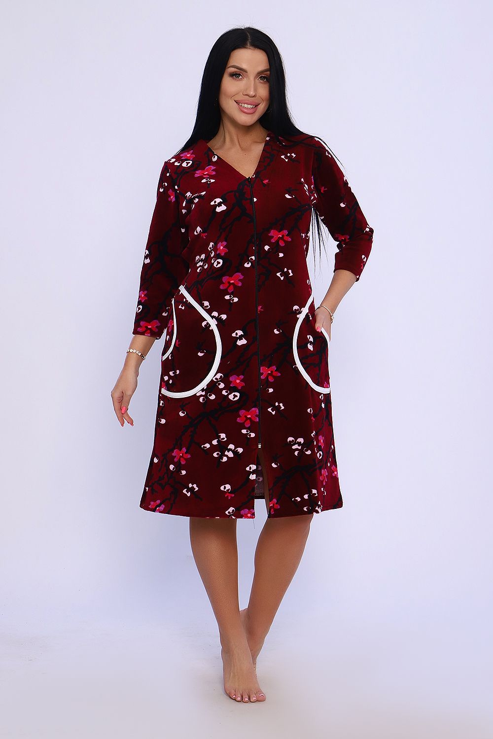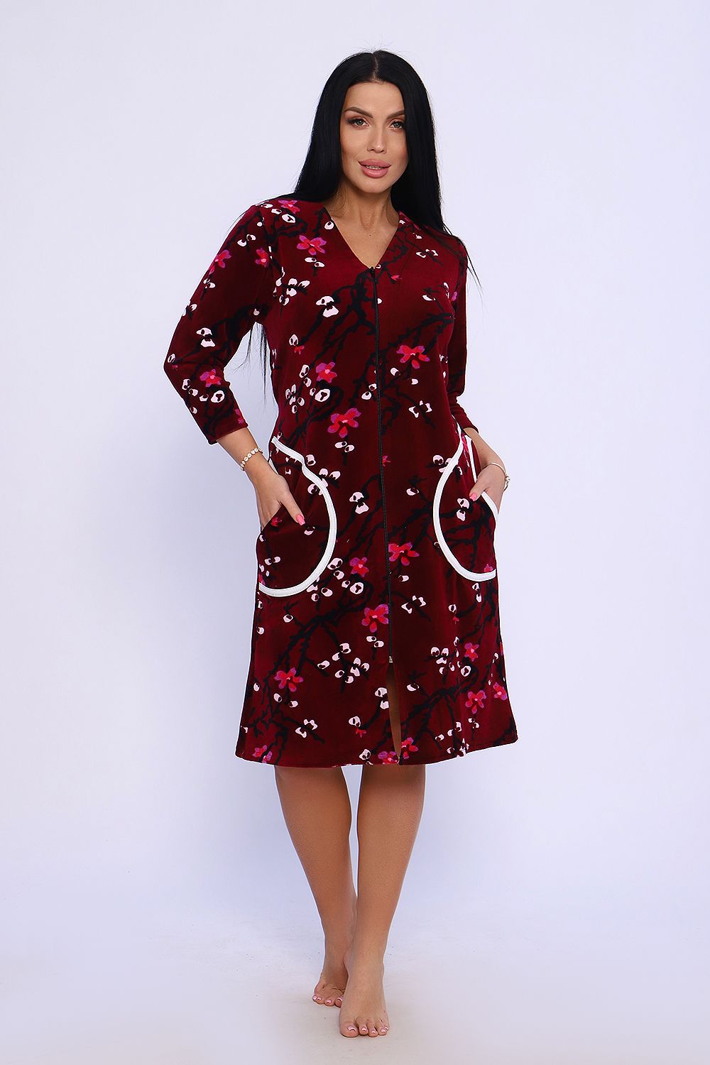 Натуральный и комфортный, женский халат. Этот велюровый халат идеально подойдет для женщин, предлагая им максимальный комфорт и удобство. Уютный домашний женский халат на молнии. Выполнен из велюра, с двумя карманами, рукава чуть ниже локтей, общая длина приблизительно до коленей. Очень теплый и приятный к телу.