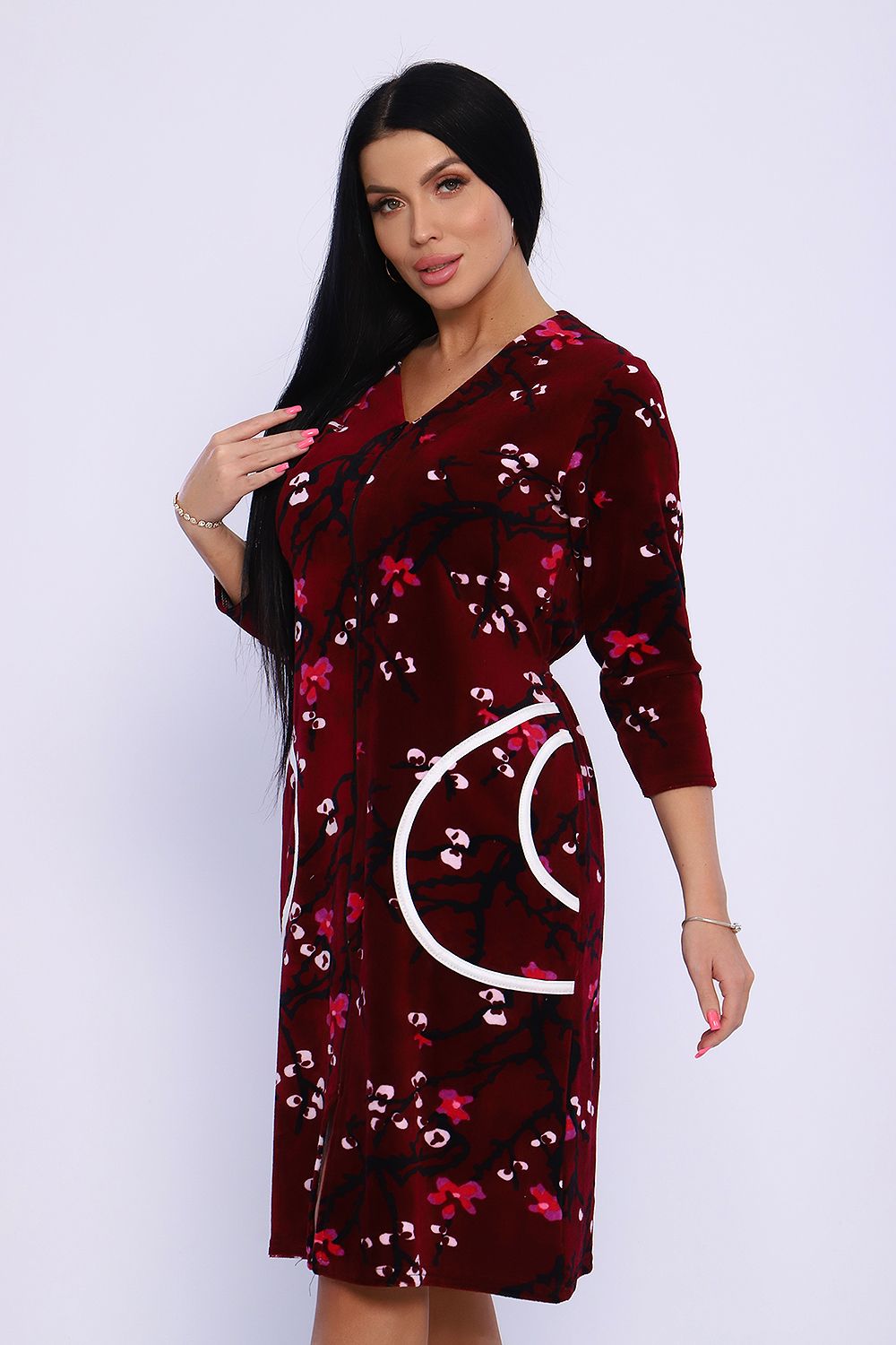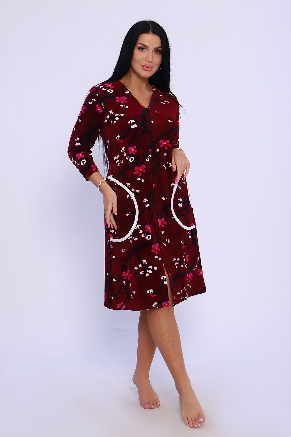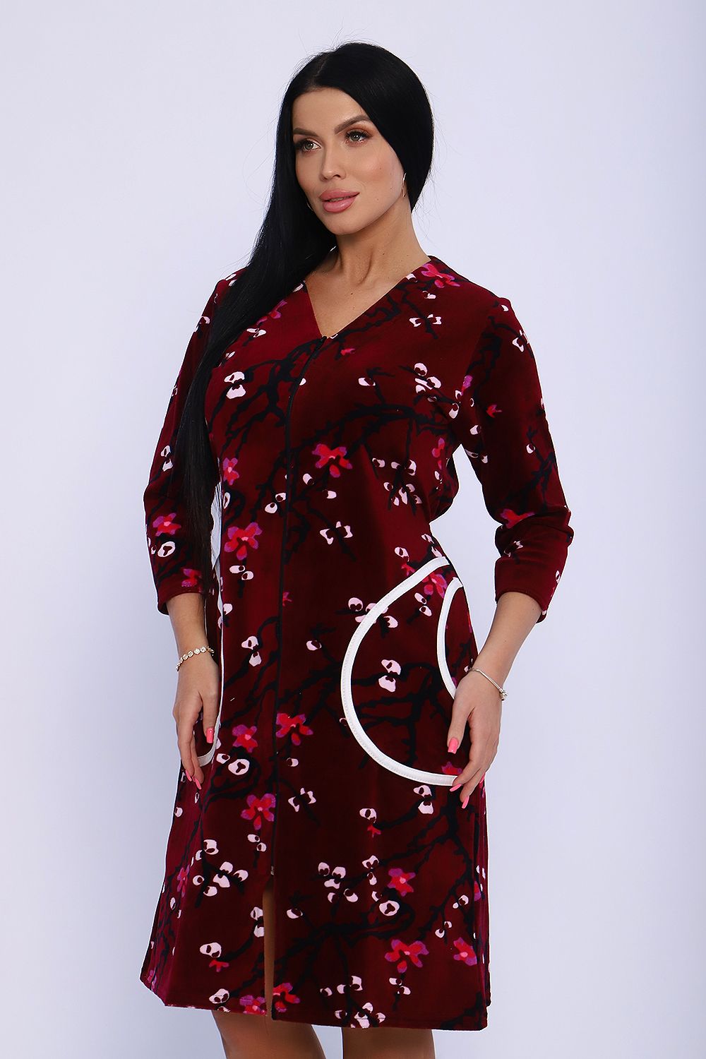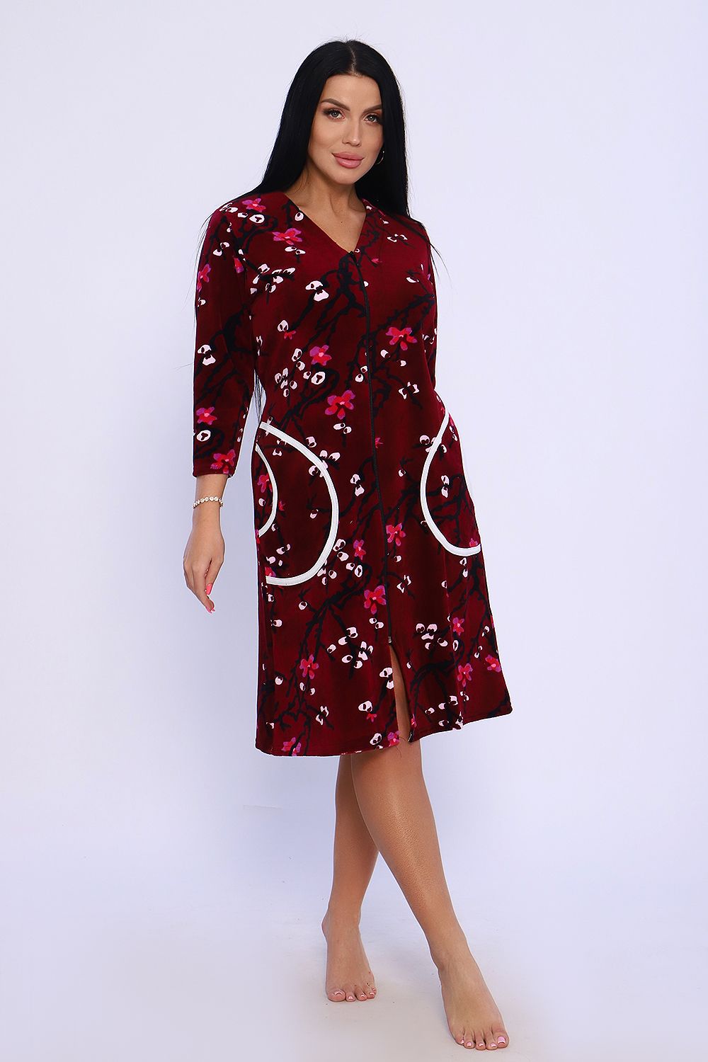 Натуральный и комфортный, женский халат. Этот велюровый халат идеально подойдет для женщин, предлагая им максимальный комфорт и удобство. Уютный домашний женский халат на молнии. Выполнен из велюра, с двумя карманами, рукава чуть ниже локтей, общая длина приблизительно до коленей. Очень теплый и приятный к телу.