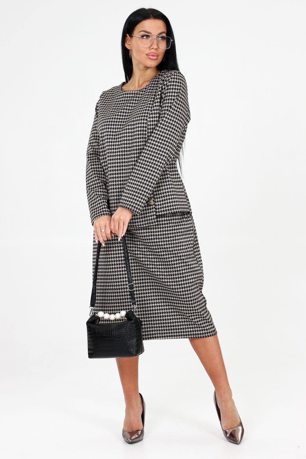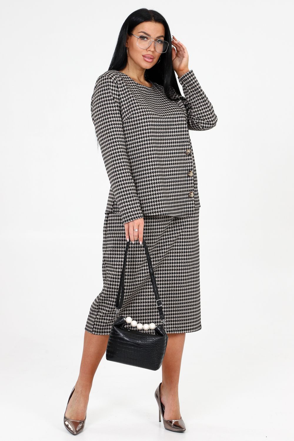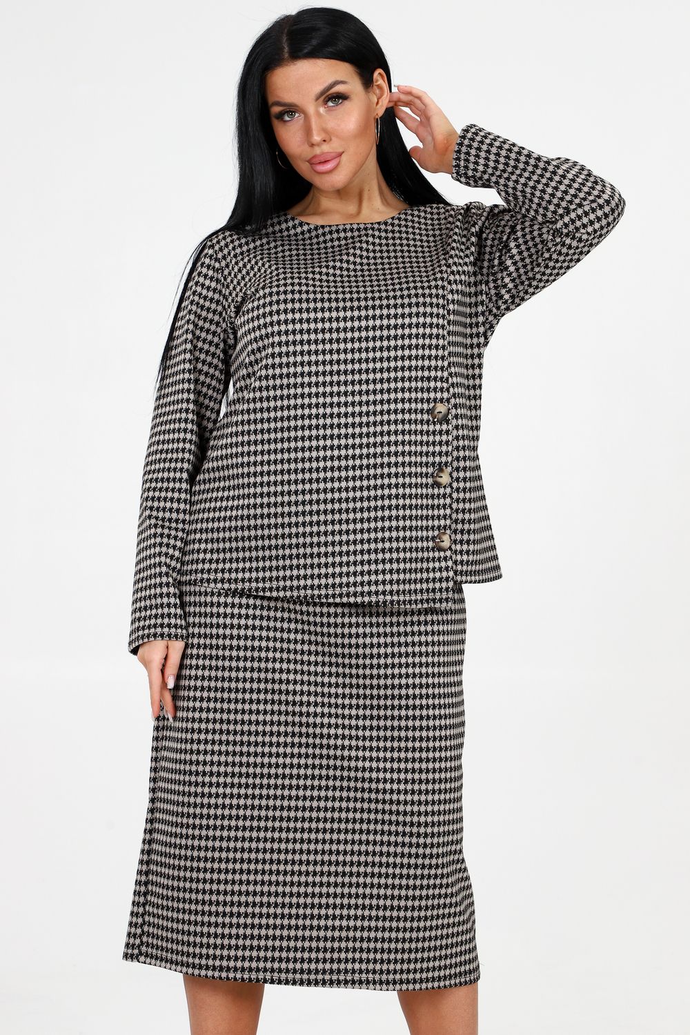 Женский костюм двойка, который является идеальным выбором для стильных и модных женщин. Этот костюм состоит из туники и юбки на резинке, создавая элегантный образ. Туника имеет длинные рукава и украшена планкой с пуговицами, добавляя изысканный шарм этому костюму. Кроме того, туника ассиметрична, что придает ей особую привлекательность. Изготовленный из качественной ткани - атаман, этот костюм обеспечивает комфорт и легкость в ношении. Благодаря широкому размерному ряду от 48 до 58 размера, каждая женщина сможет найти подходящую модель. Костюм представлен в двух классических расцветках: белой и бежевой.