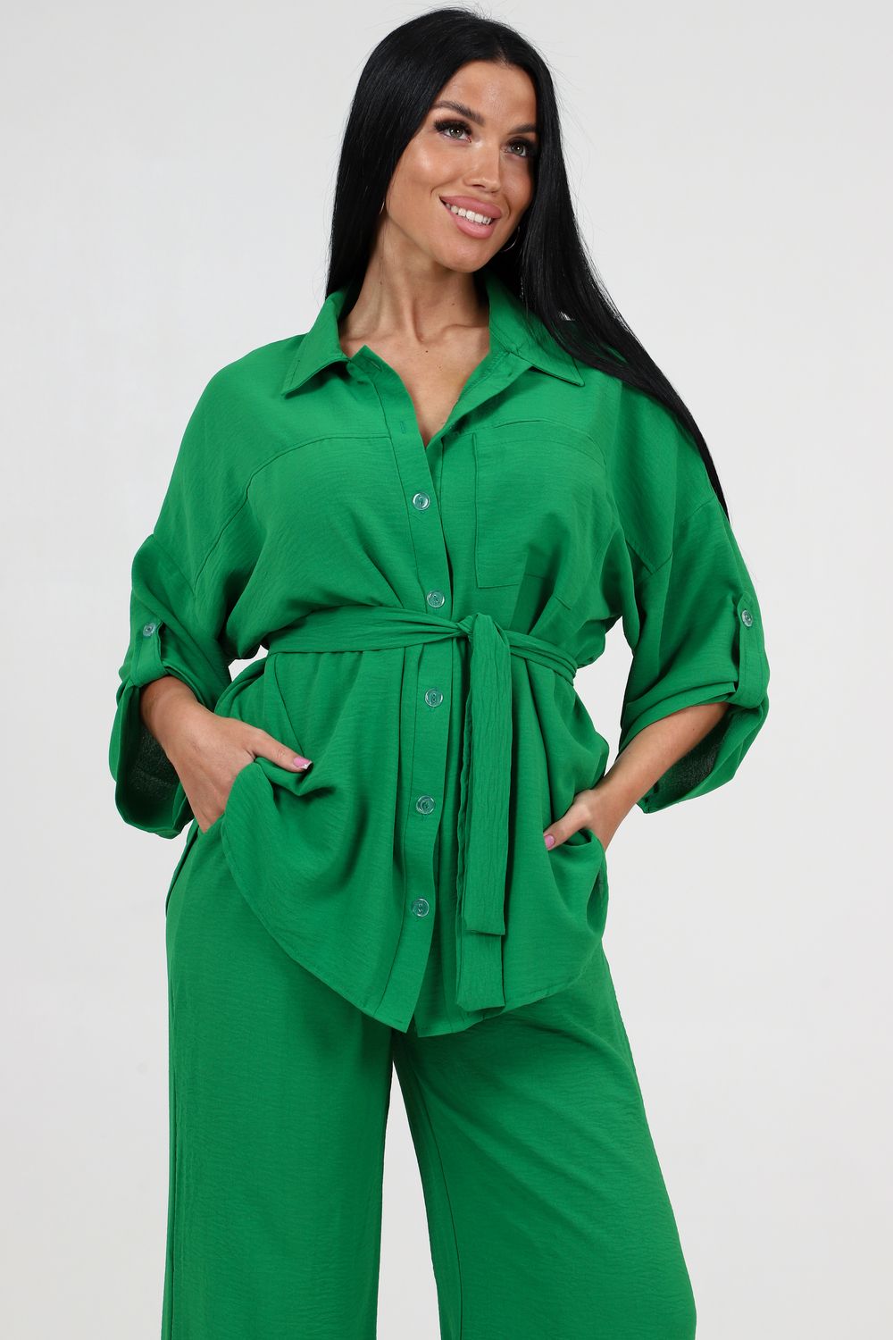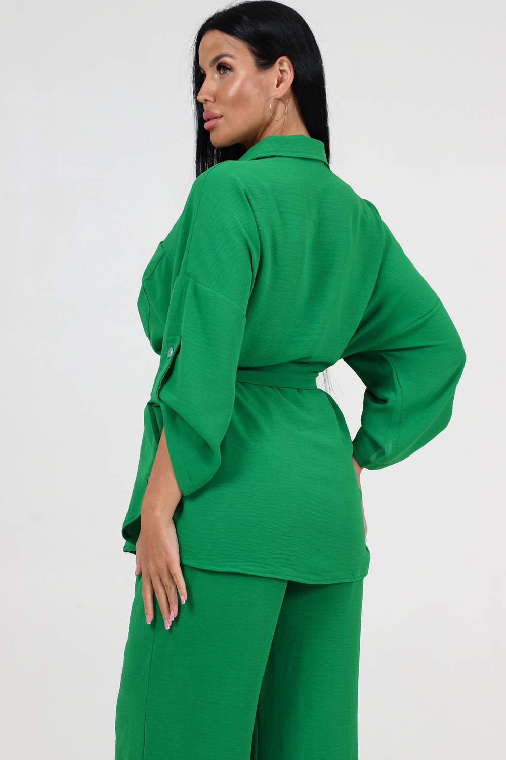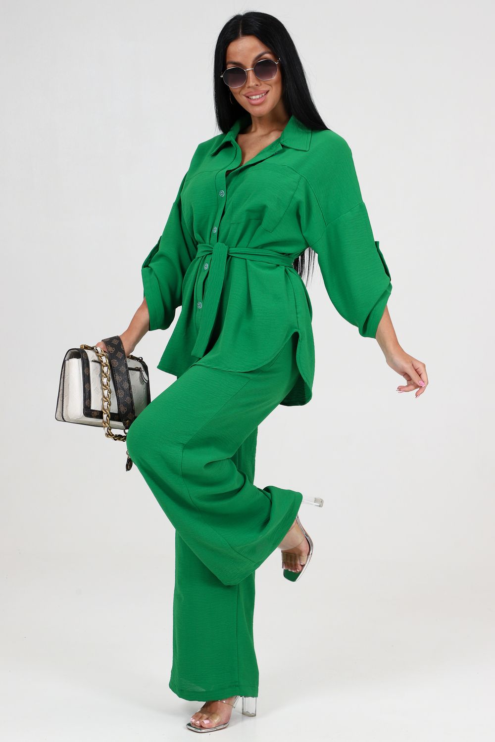 В комплекте с костюмом идет стильная рубашка на пуговицах с воротником. Этот элемент добавляет официальности и элегантности вашему образу. Вы сможете носить этот костюм как для работы, так и для особых случаев.