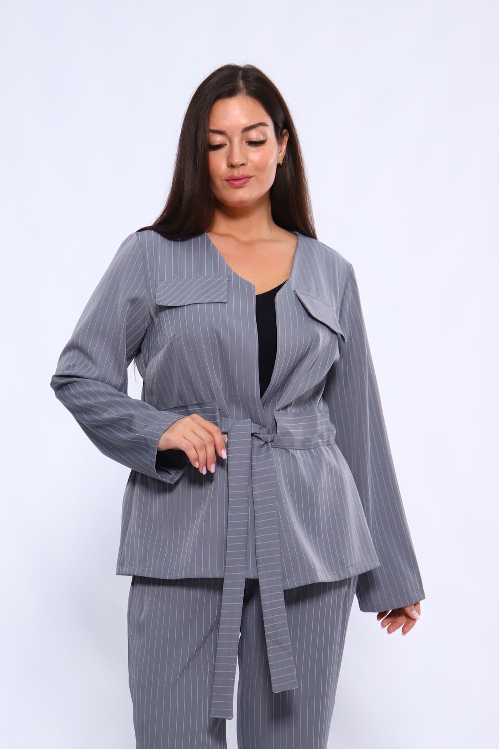 Откройте для себя элегантный женский костюм, состоящий из жакета и брюк, выполненных из высококачественной костюмной ткани. Этот костюм, представленный в двух стильных расцветках - серой и черной, станет отличным выбором для уверенных в себе женщин, ценящих комфорт и стиль.