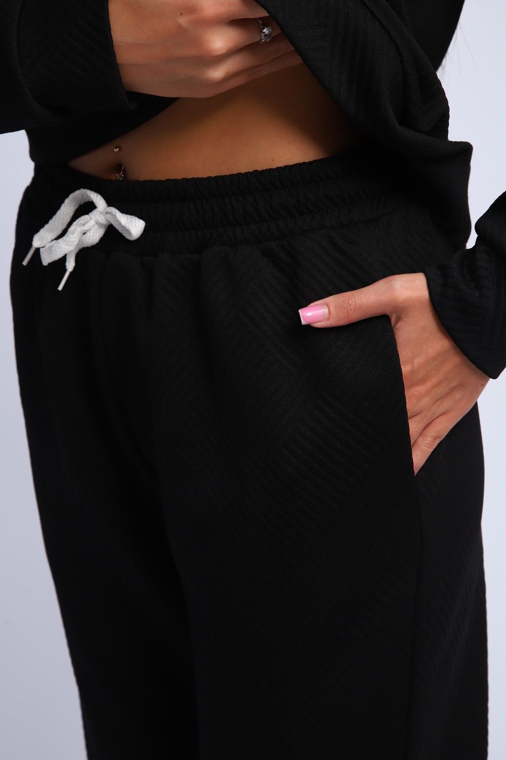 Брюки спортивного костюма с удобной резинкой внизу подчеркнут вашу фигуру и обеспечат свободу движений. Этот спортивный костюм идеально подойдет для занятий спортом, прогулок или просто для отдыха дома.