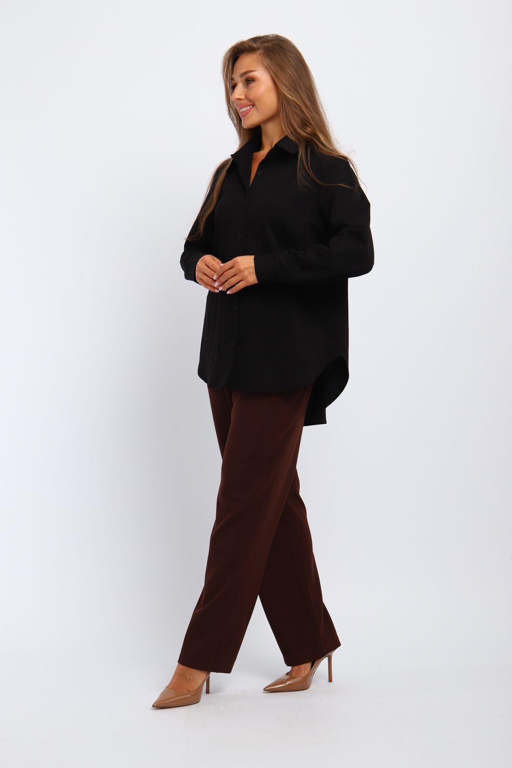 Брюки на резинке обеспечивают идеальную посадку и свободу движений, а классическая рубашка придает образу завершенность и изысканность. Этот женский брючный костюм подойдет как для деловых встреч, так и для повседневной носки.