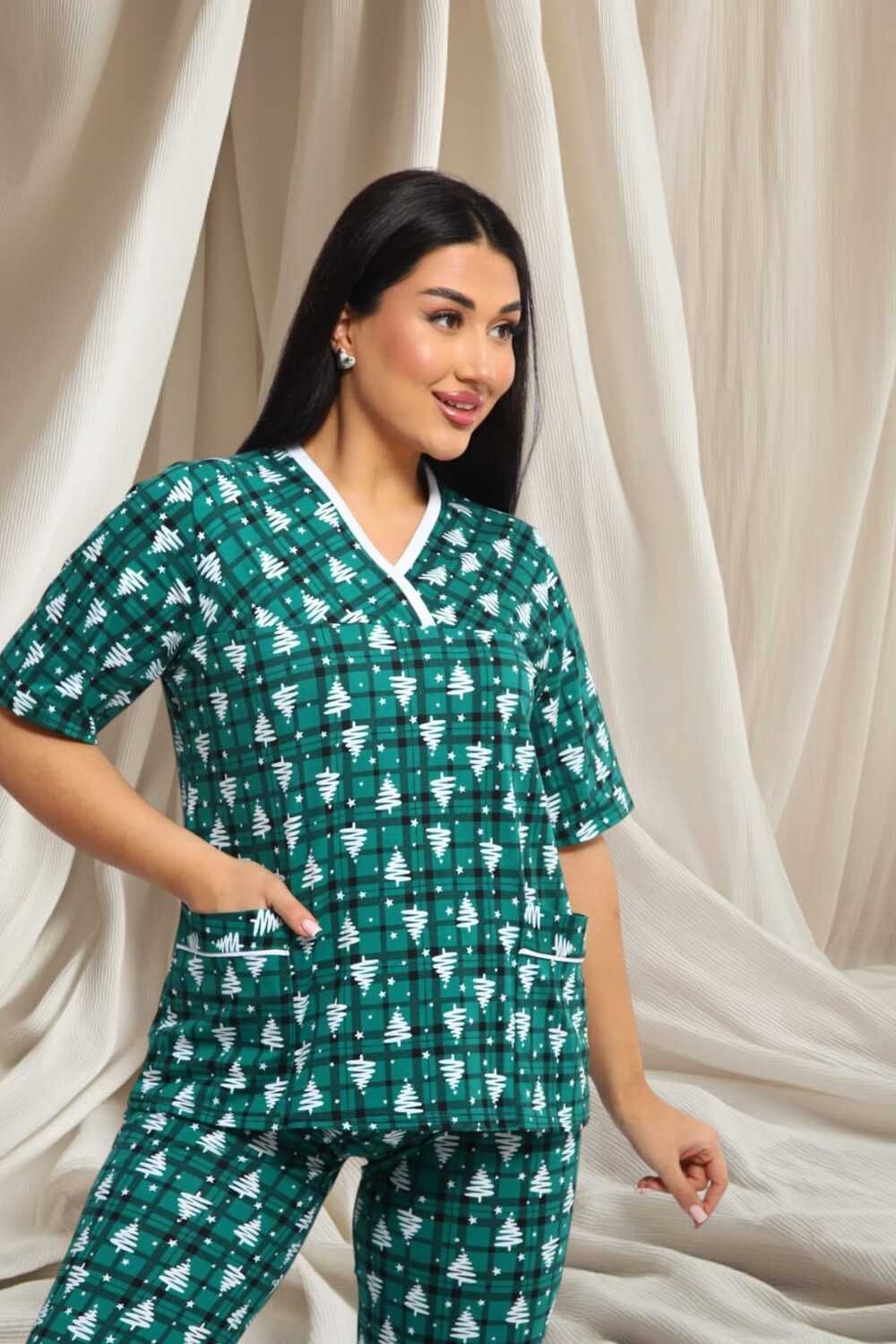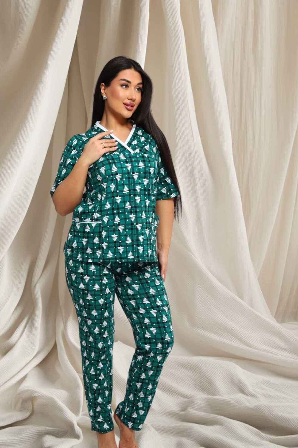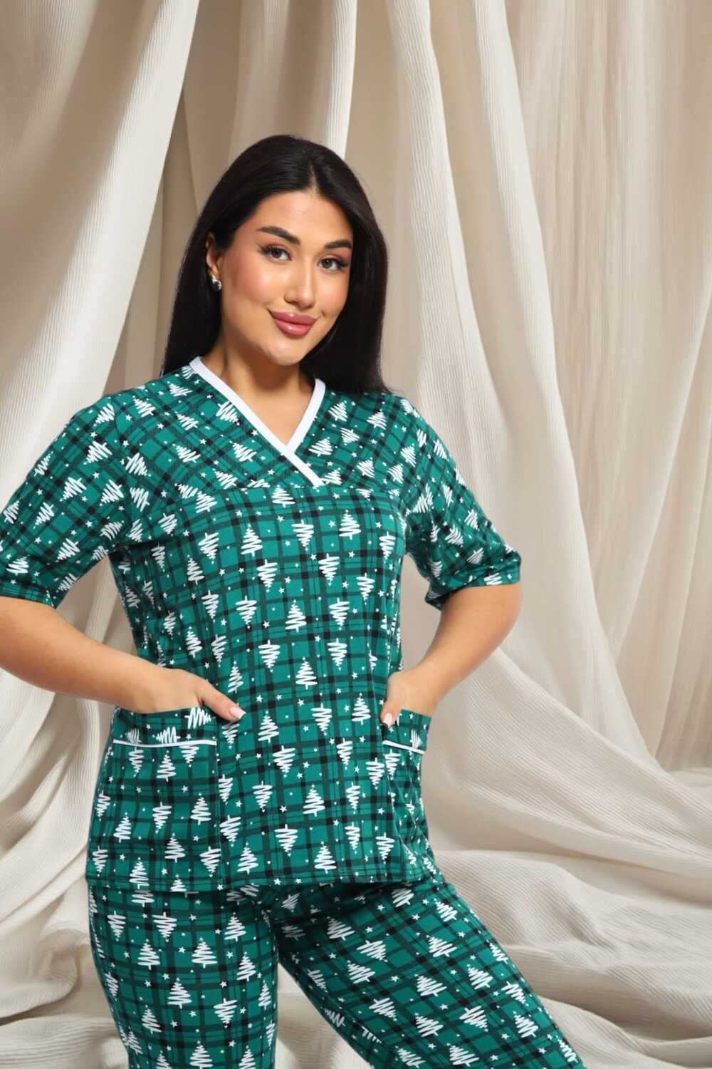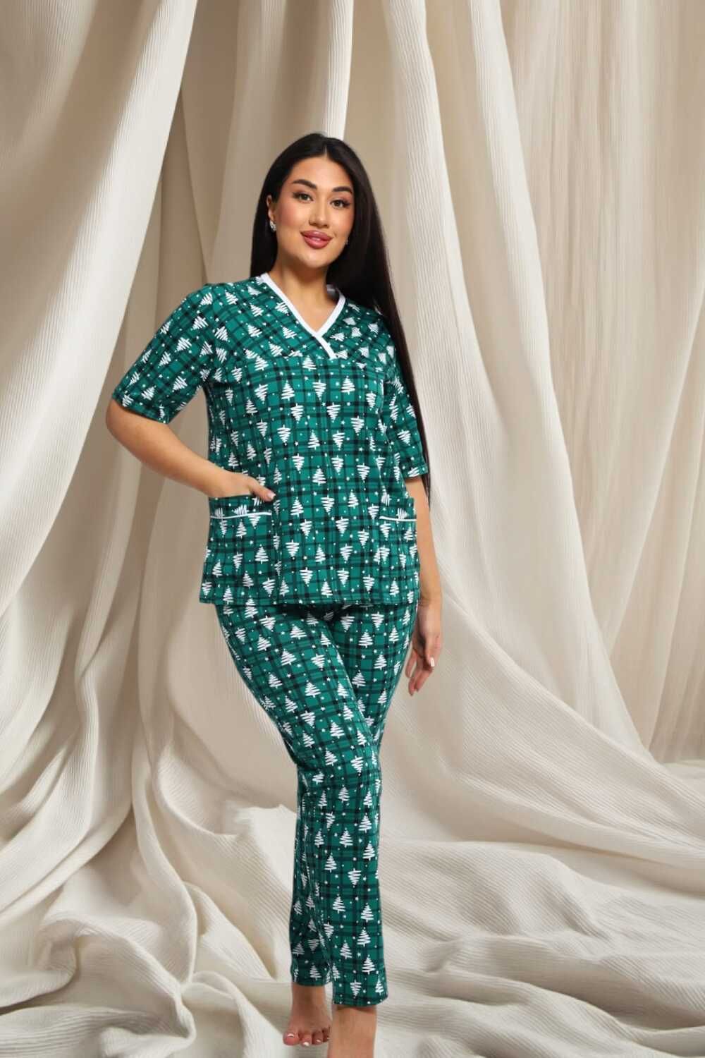 Стильный комплект сочетает в себе комфорт и модный дизайн, окантовка V-образного выреза добавляет изюминку. Верх оснащен функциональными карманами, а удобный крой брюк обеспечивает комфорт в течение всего дня.