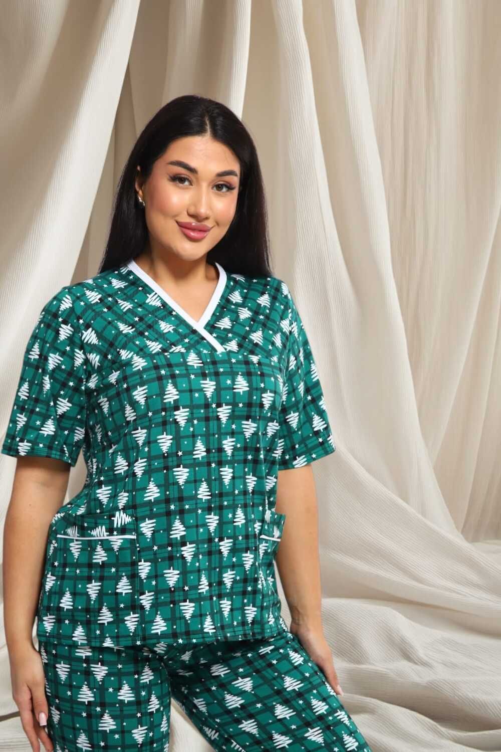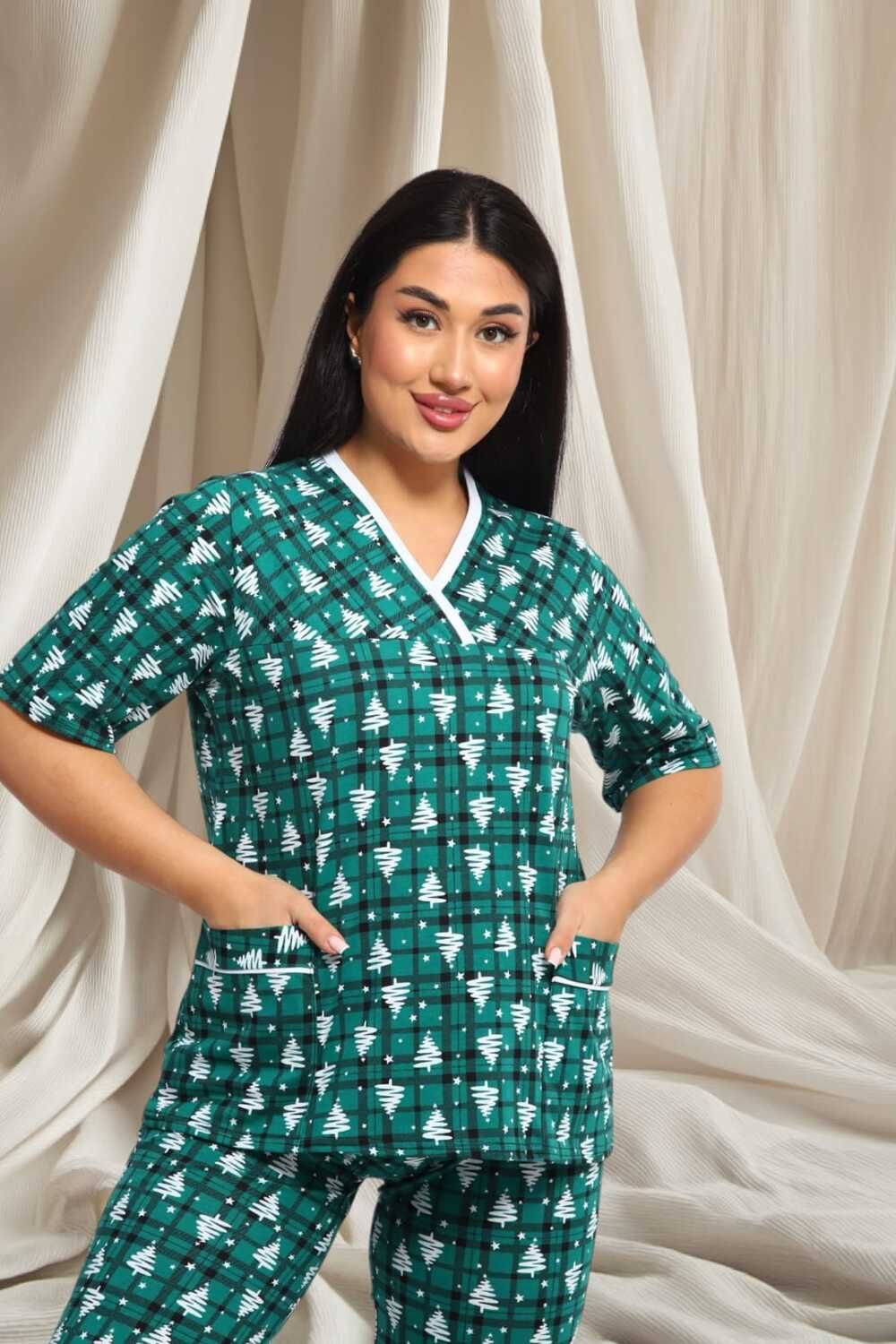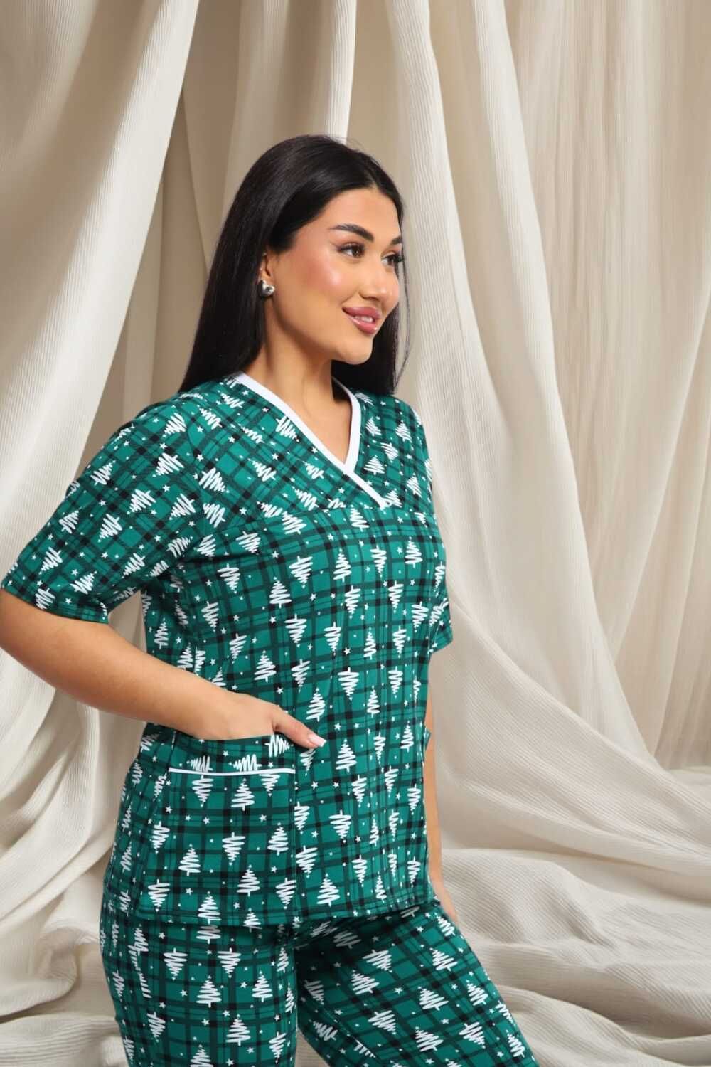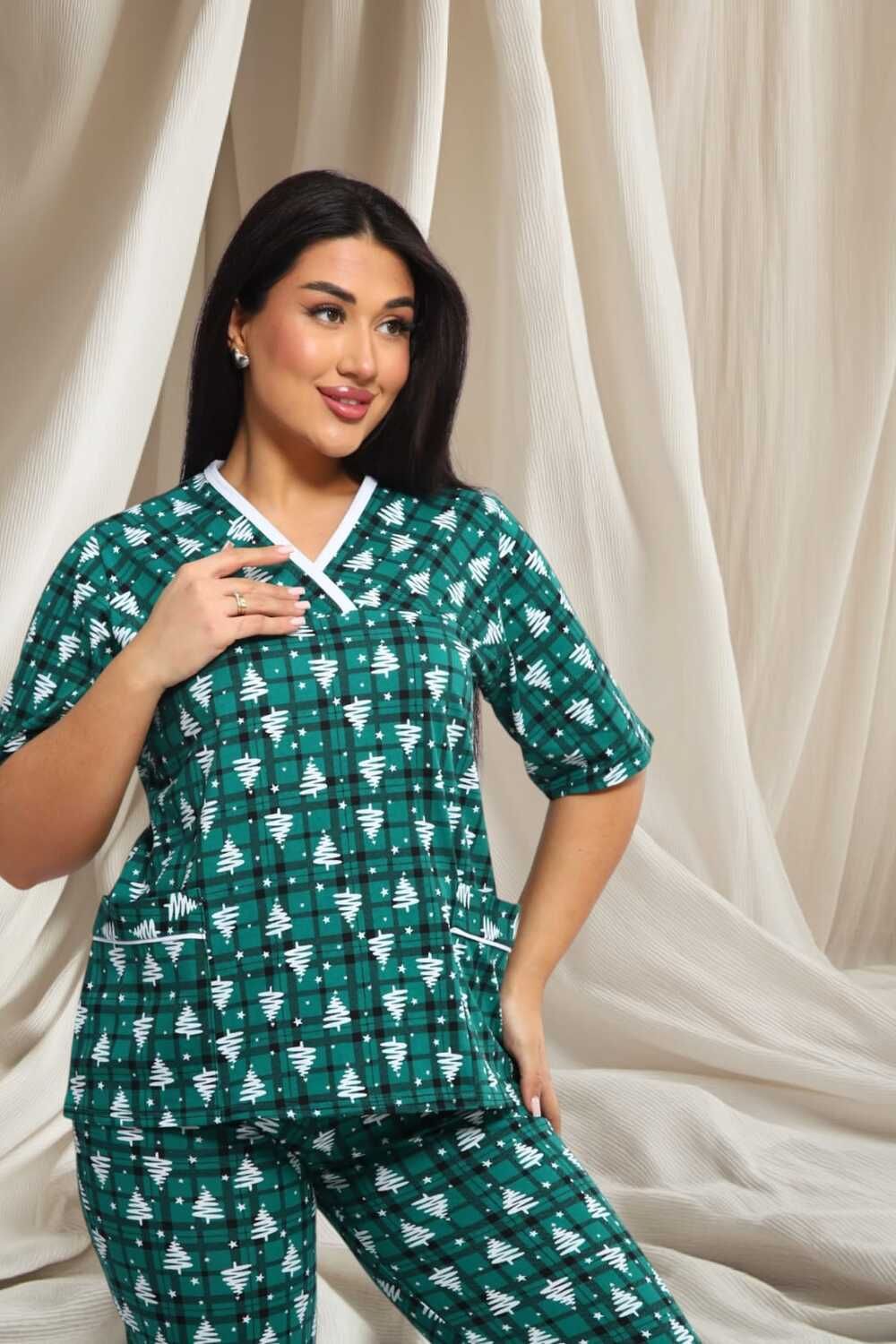 Стильный комплект сочетает в себе комфорт и модный дизайн, окантовка V-образного выреза добавляет изюминку. Верх оснащен функциональными карманами, а удобный крой брюк обеспечивает комфорт в течение всего дня.