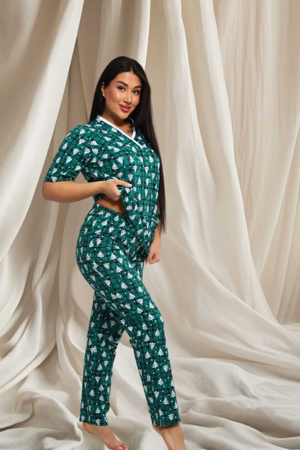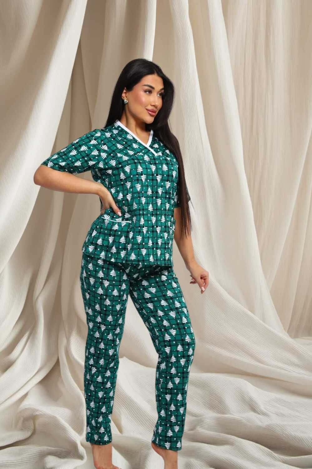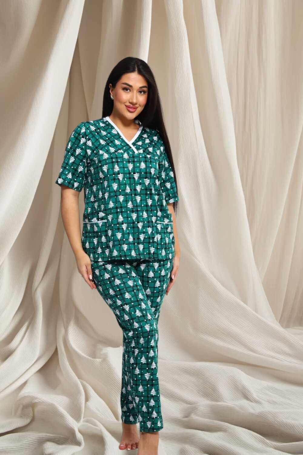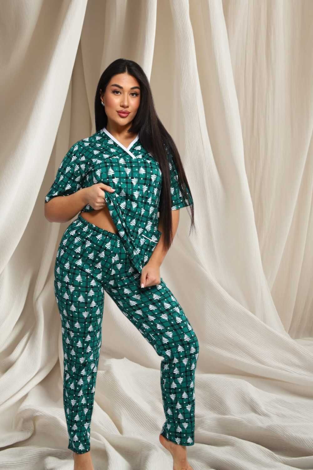Стильный комплект сочетает в себе комфорт и модный дизайн, окантовка V-образного выреза добавляет изюминку. Верх оснащен функциональными карманами, а удобный крой брюк обеспечивает комфорт в течение всего дня.