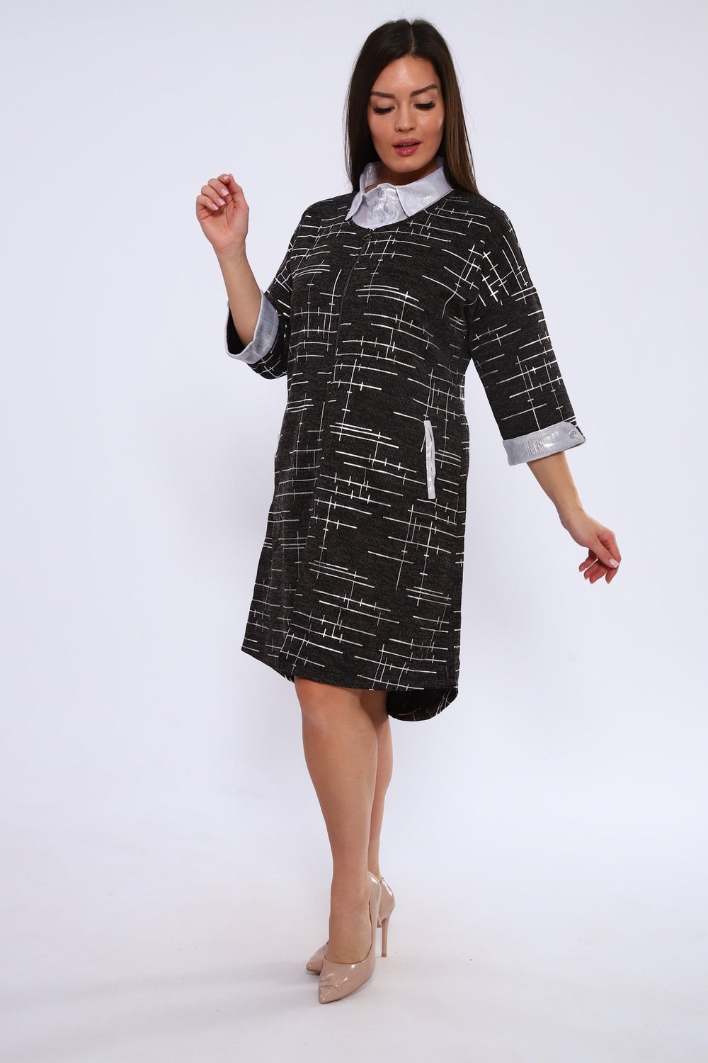 Широкий размерный ряд с 52 до 62 размера. Это позволяет каждой женщине найти свою идеальную посадку и почувствовать себя уверенно в любой ситуации. В создании наших платьев мы используем только лучшие ткани, обеспечивающие комфорт и долговечность. Материалы отличаются износостойкостью и хорошо держат форму даже после многочисленных стирок. Это платье отличается своей универсальностью и легко комбинируется с различными аксессуарами и обувью. Попробуйте сочетать его с элегантными туфлями и минималистичными украшениями для создания делового образа, или добавьте яркие акценты и стильную обувь для неформальной встречи. Экспериментируйте с поясами, чтобы подчеркнуть талию и добавить индивидуальность вашему стилю.