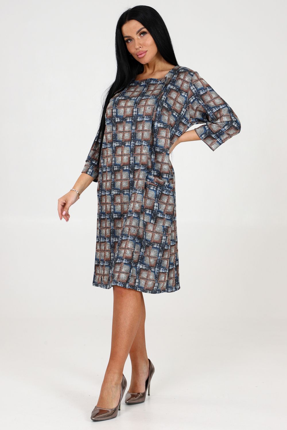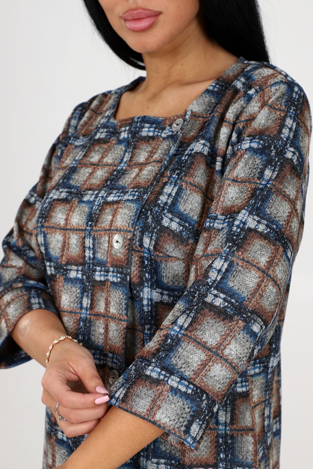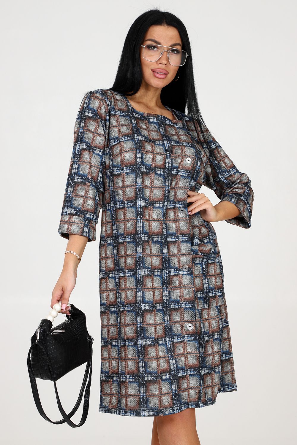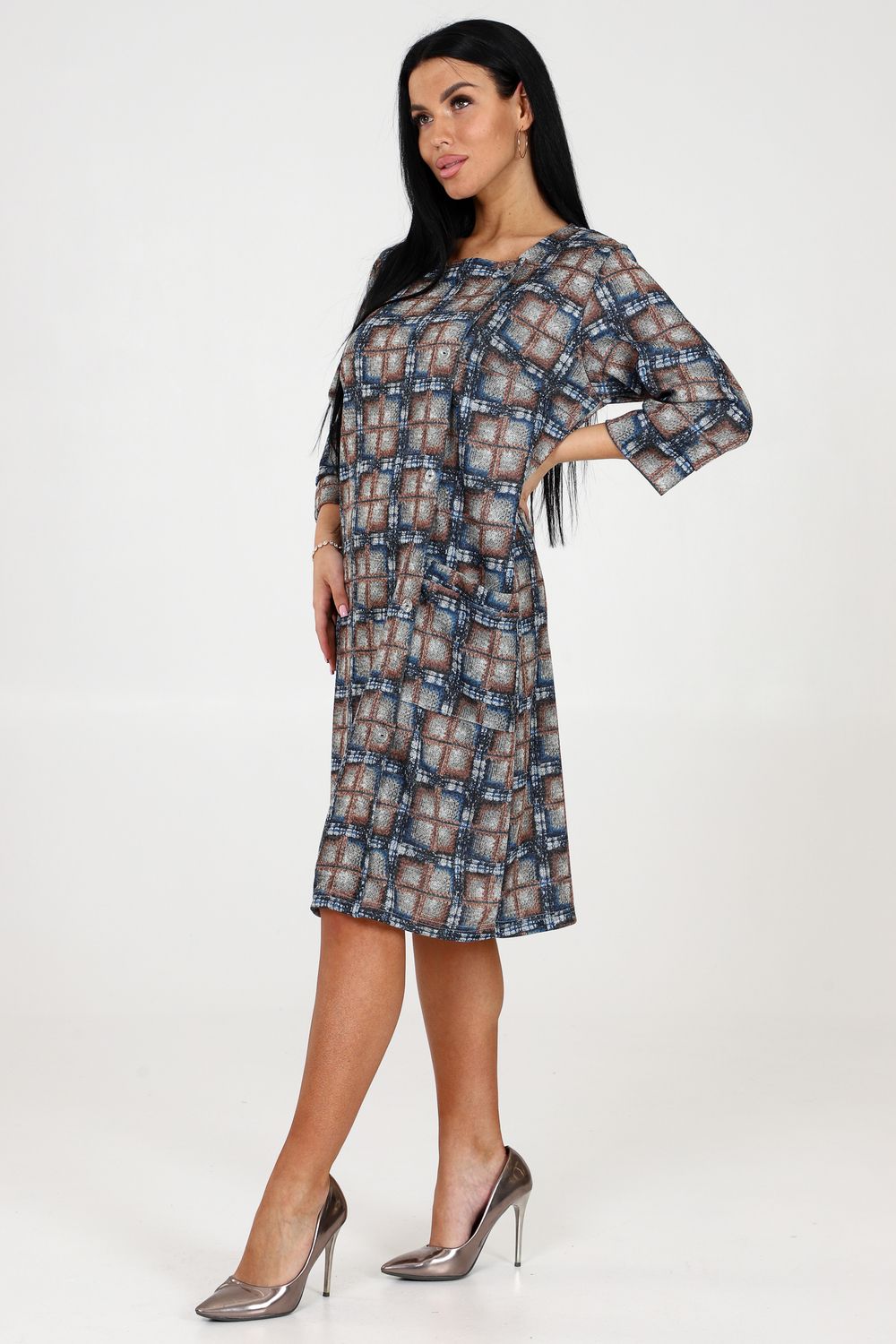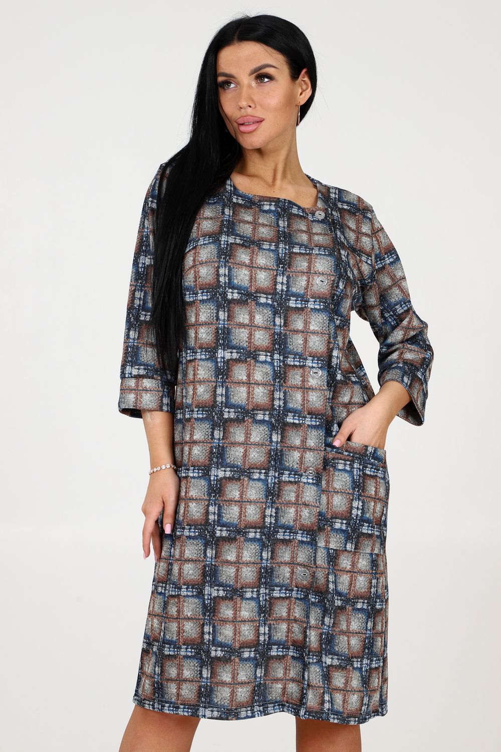 Женское повседневное платье с квадратной горловиной, рукавом 3/4 на манжете и пуговицами - это идеальный выбор для стильных и комфортных образов. Выполненное из качественной ткани сандра, оно обеспечивает великолепную посадку и долговечность. Благодаря присутствию бокового кармана, вы сможете хранить мелочи всегда под рукой.