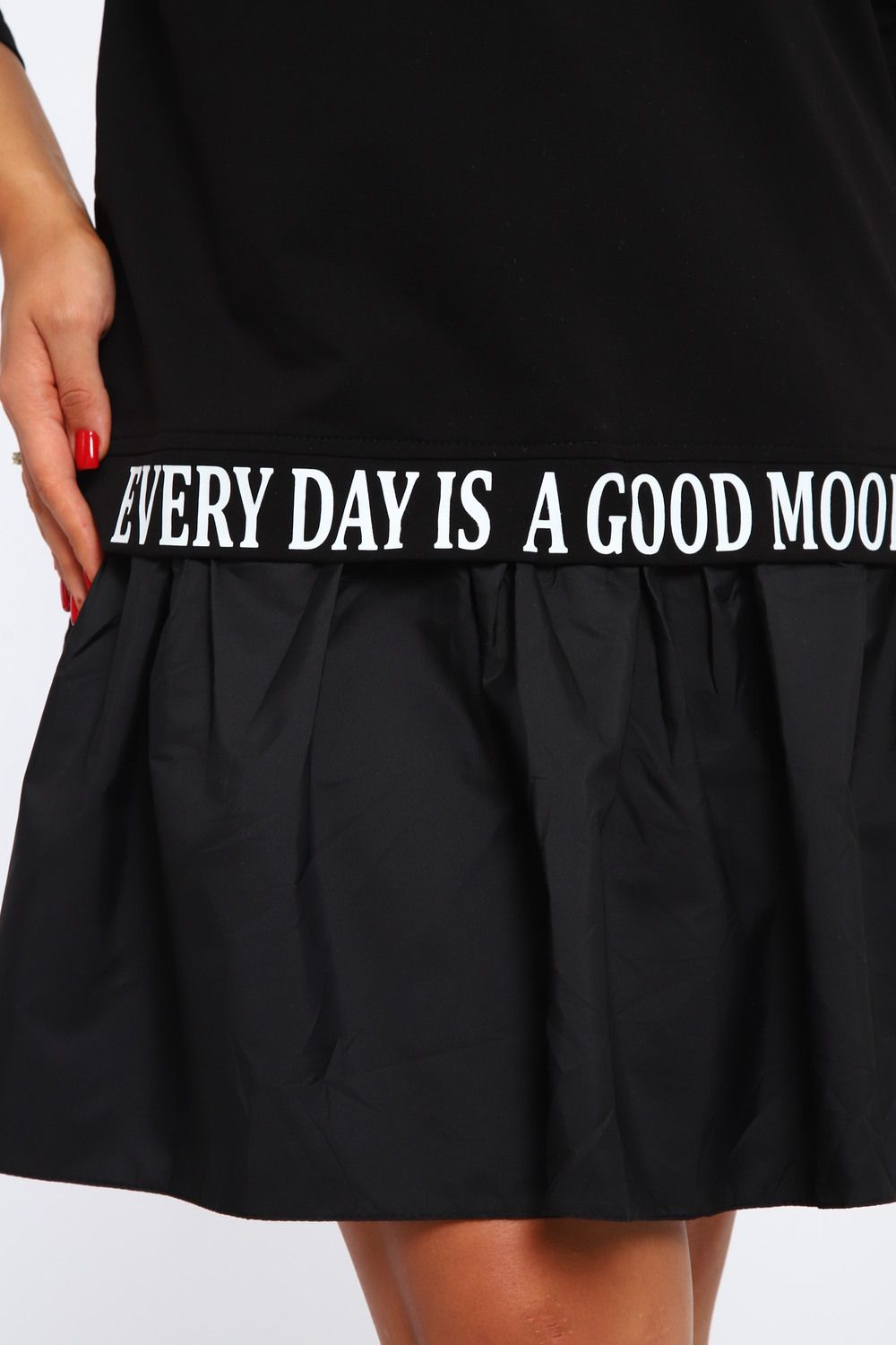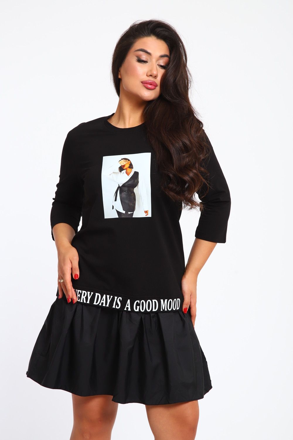 Это черное платье дарит вам комфорт и стиль, который вы заслуживаете. Построенное из качественных материалов, оно идеально сидит на фигуре и позволяет вам чувствовать себя уверенно и свободно. По всему низу платья идет элегантный волан, создающий гармоничный силуэт. Волан добавляет платью нежности и игривости, подчеркивая вашу женственность и создавая эффектную игру линий при каждом движении.