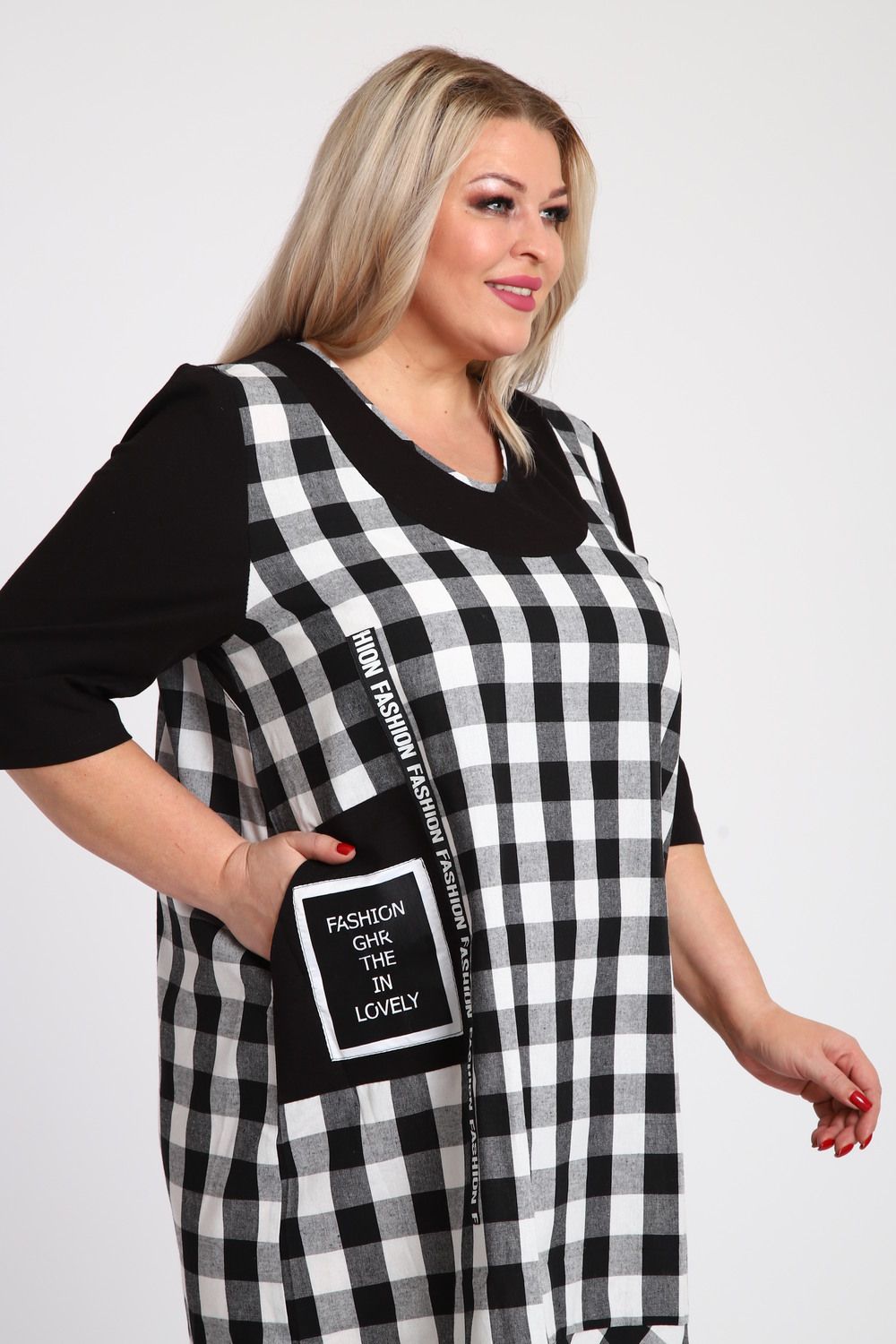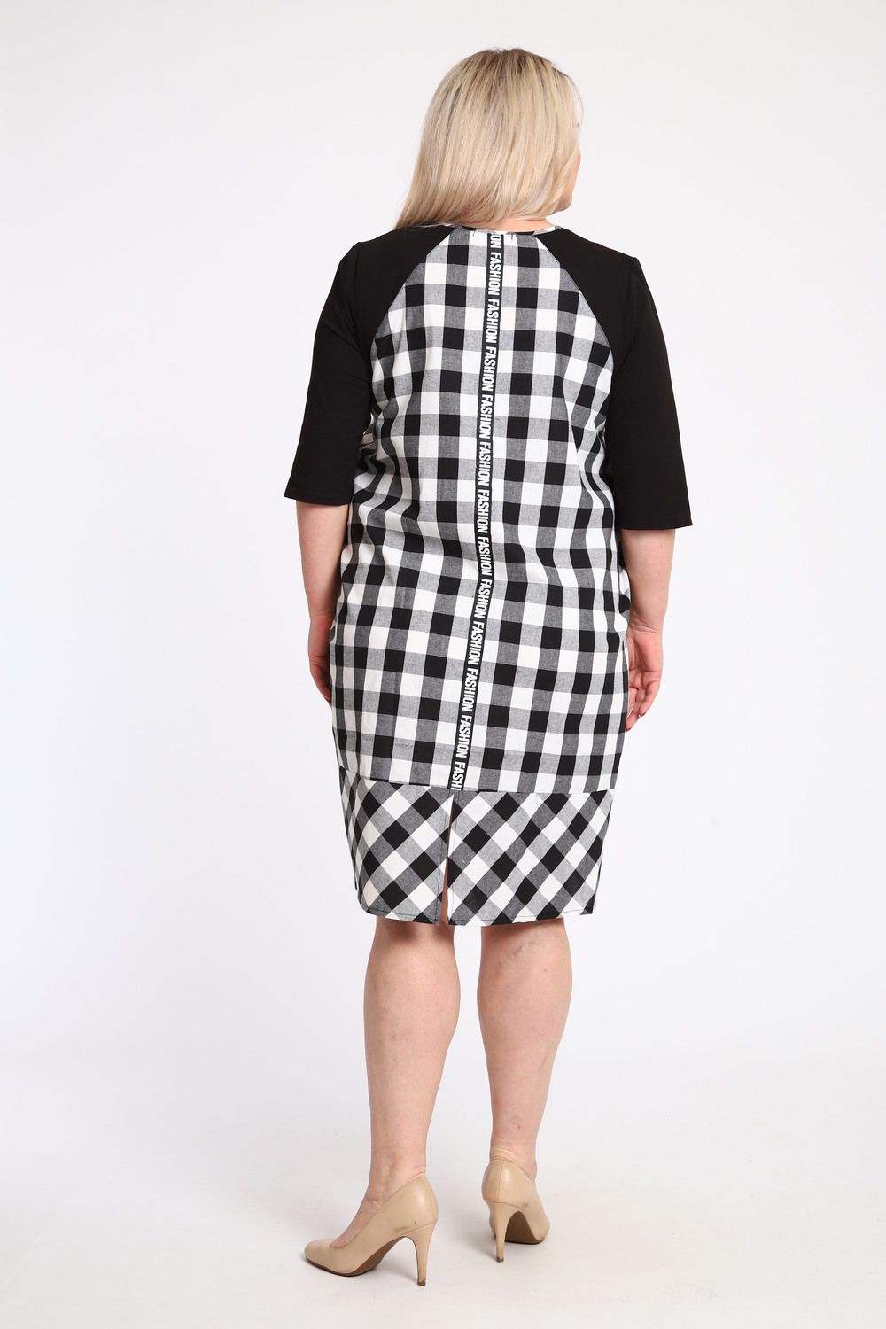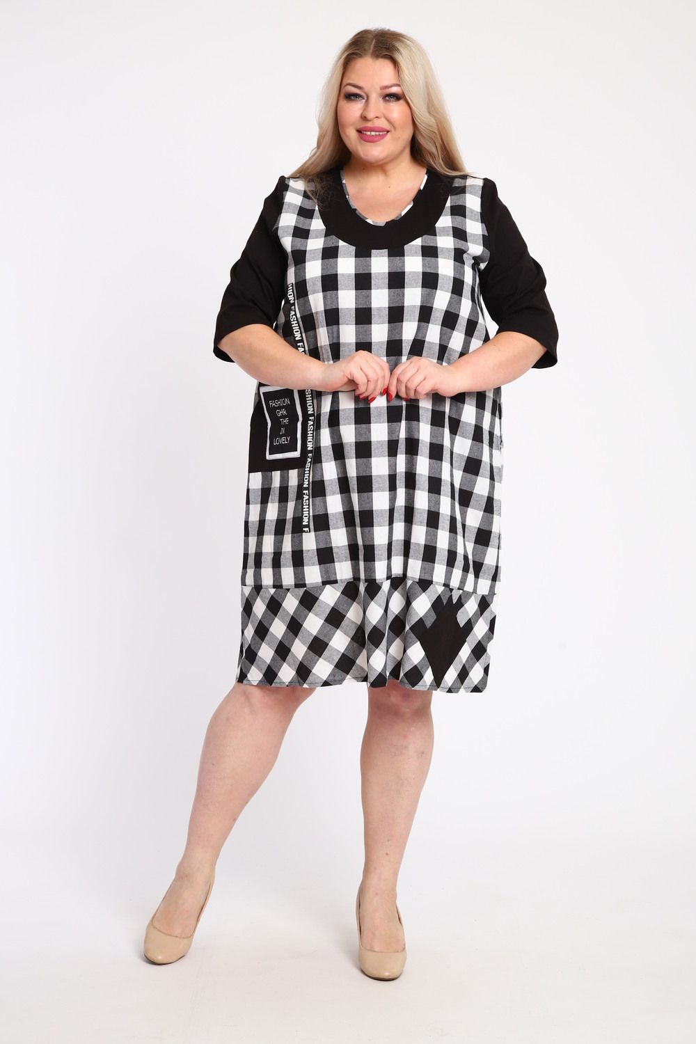 Стильное женское платье в клетку с воланом и декором – размеры от 58 до 64