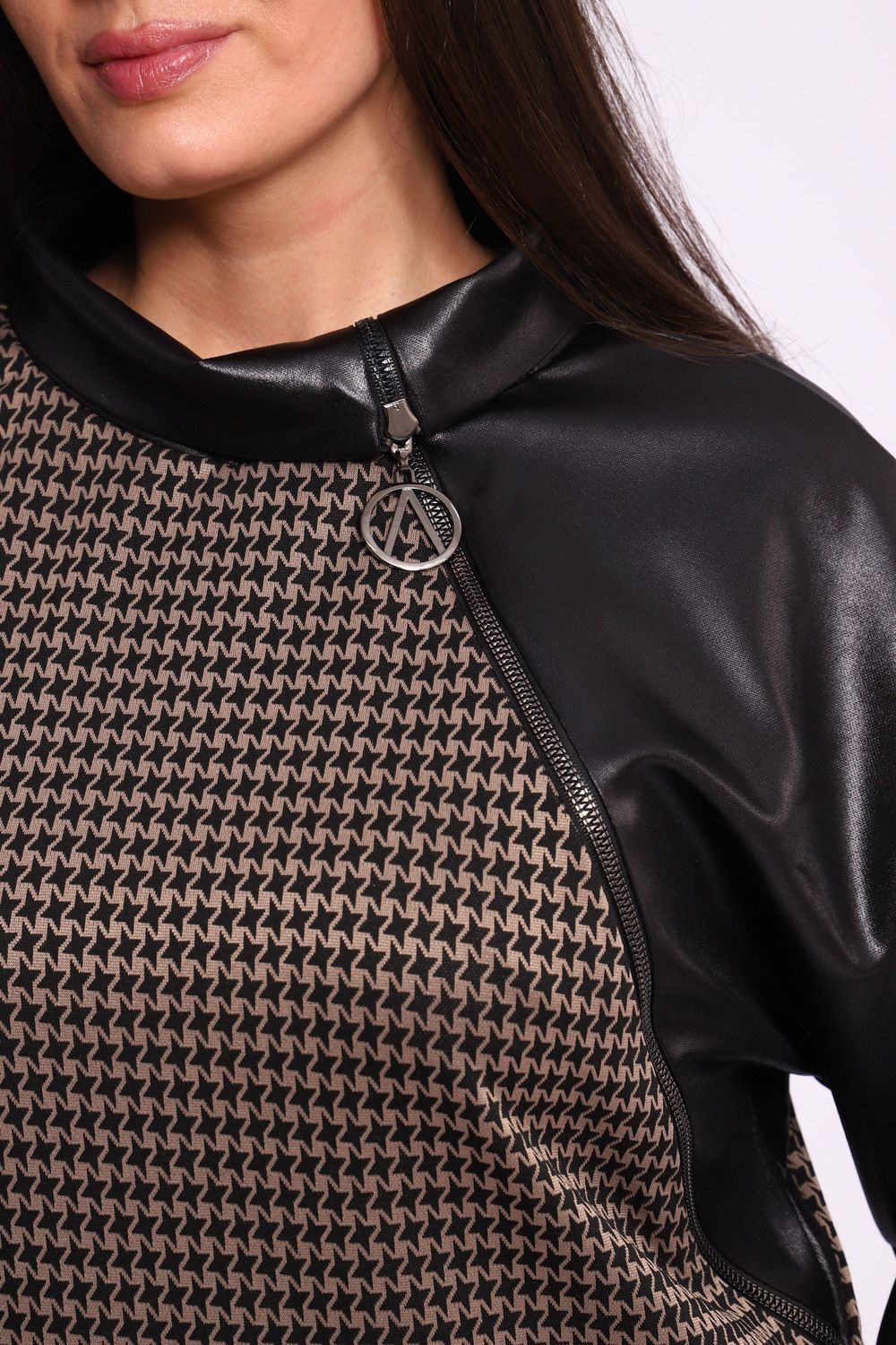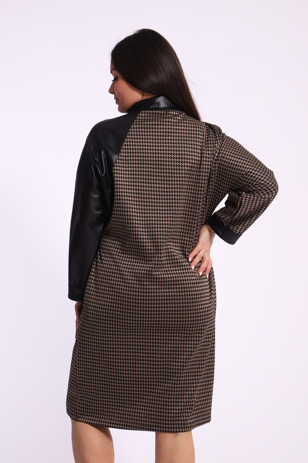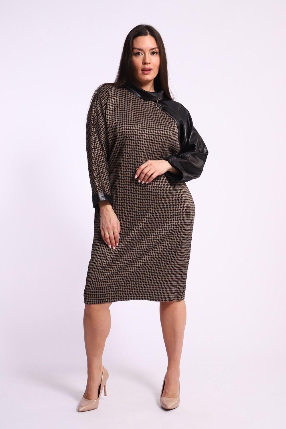 Откройте для себя мир изысканной моды с нашим женским платьем со спущенным рукавом и модным принтом "гусиные лапки". Это платье станет вашей надежной основой для создания элегантного и современного образа. Его уникальный дизайн прекрасно сочетается с отделкой из качественной эко-кожи, добавляя нотки роскоши и утонченности.