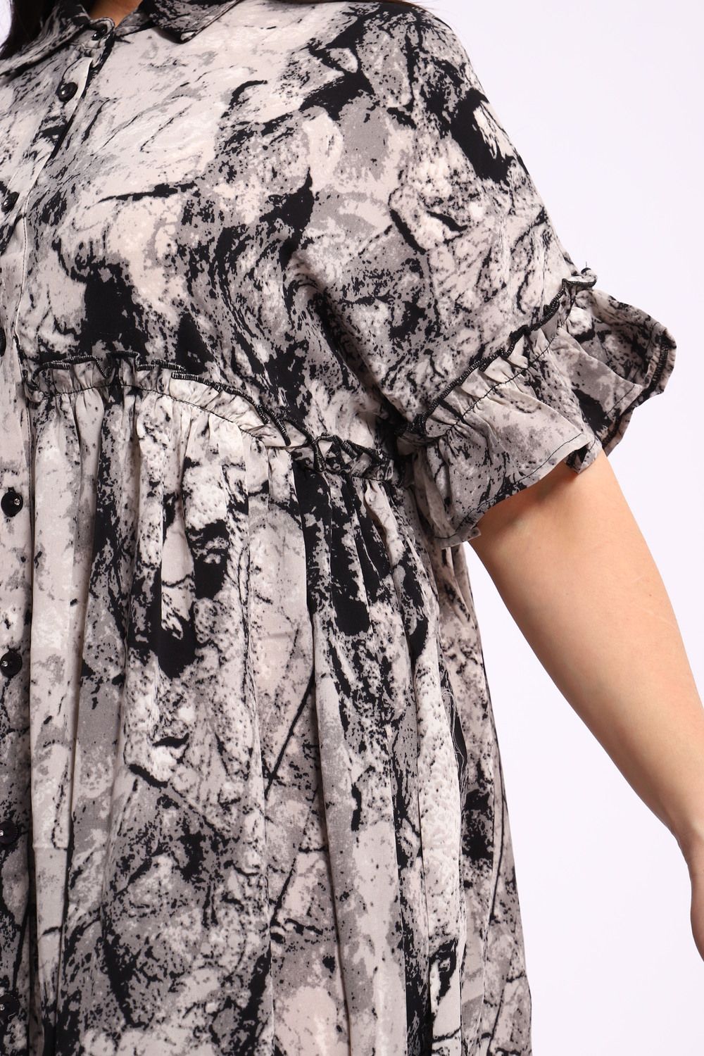 Короткие рукава обеспечивают дополнительный комфорт, особенно в тёплое время года, предоставляя свободу движений и стильный внешний вид. Платье выполнено из качественных материалов, обеспечивающих долгий срок службы и приятные ощущения на коже.