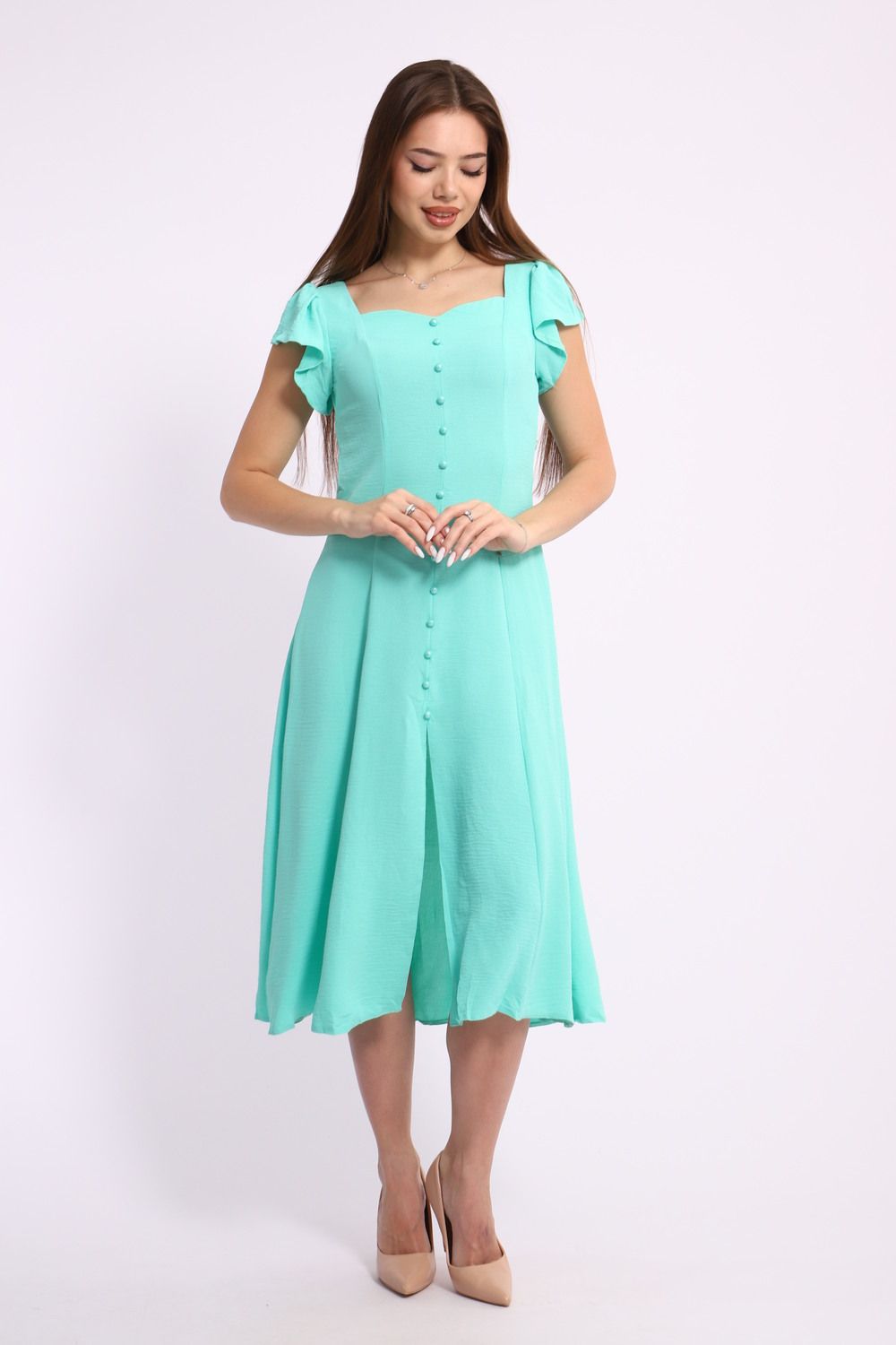 Декоративные пуговицы на полочке: На передней части платья размещены изящные декоративные пуговицы. Они добавляют изделию нотку оригинальности и могут стать акцентным аксессуаром, привлекая взгляды окружающих.