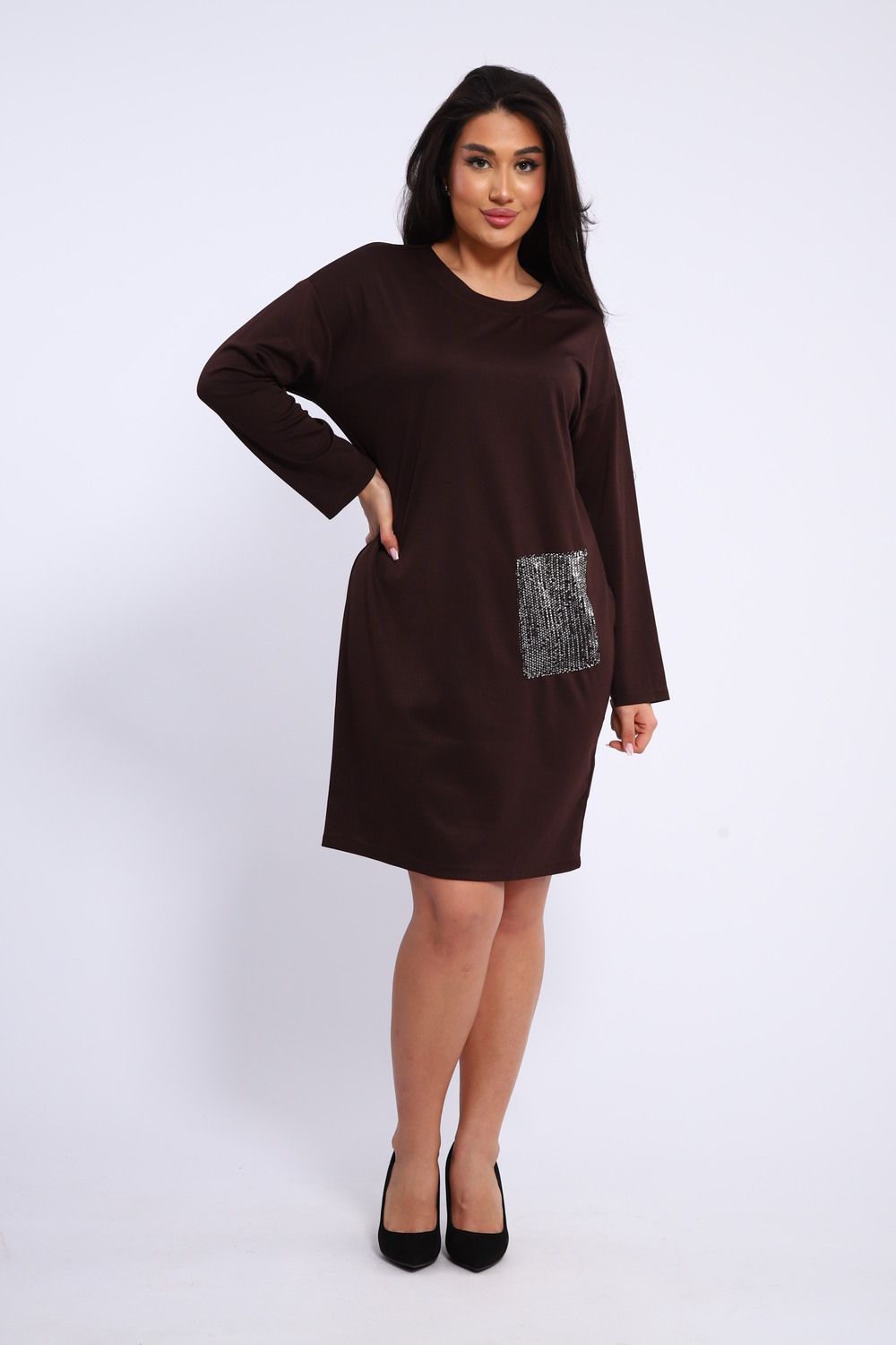 Откройте для себя элегантность и стиль с нашим женским платьем со спущенным рукавом, выполненным из ткани "академик". Это платье создано для женщин, которые ценят гармоничное сочетание комфорта и моды. Особенность нашего платья заключается в изысканном дизайне и актуальных элементах декора, таких как карман на полочке, украшенный россыпью сияющих пайеток.