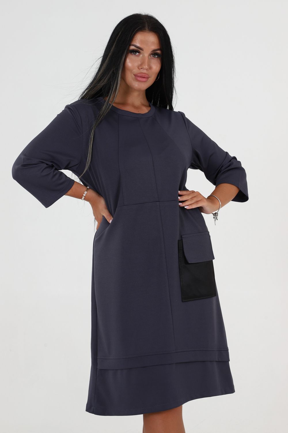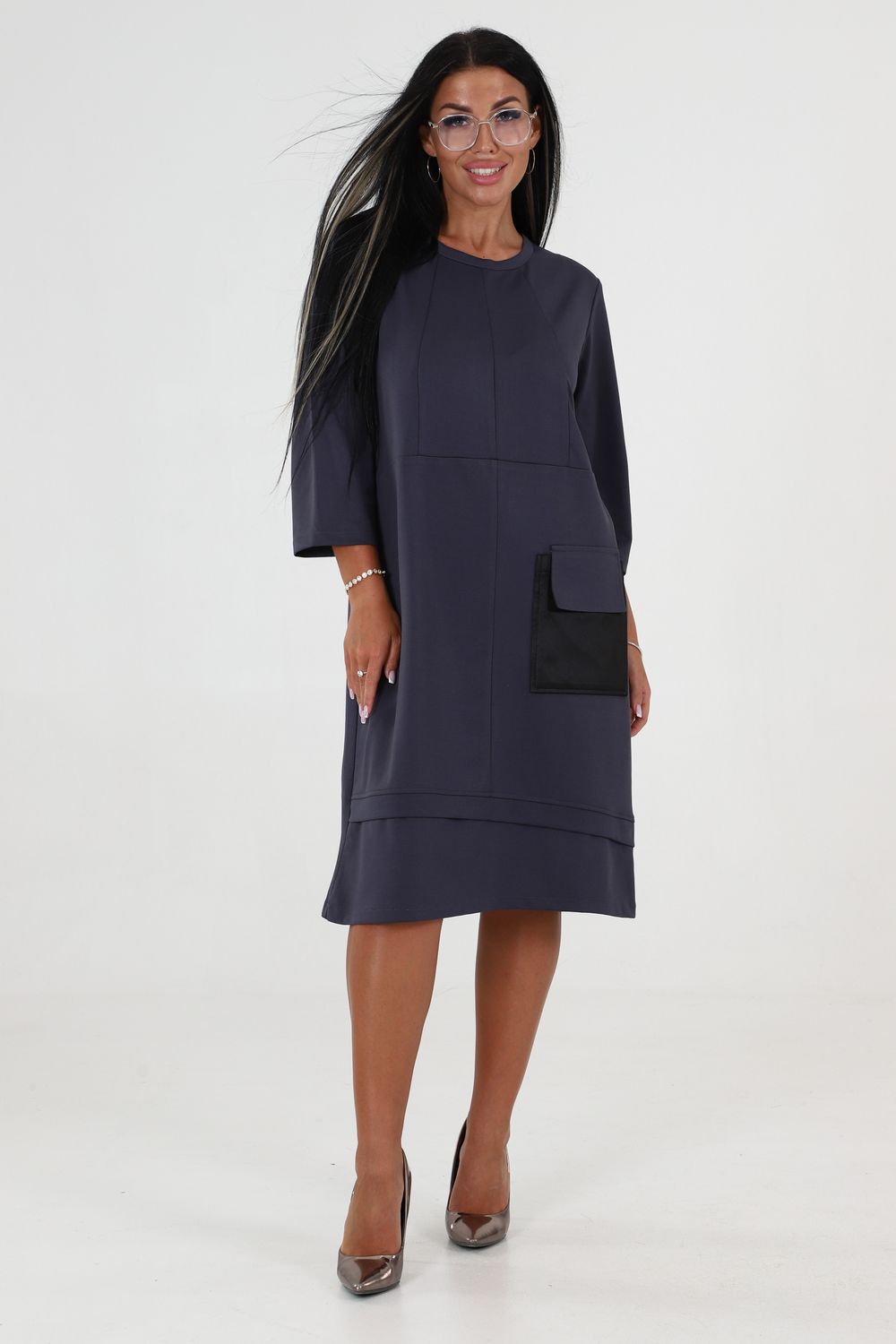 На полочке изделия расположен стильный накладной карман из отделочной ткани, который не только выполняет декоративную функцию, но и добавляет практичности вашему повседневному или праздничному наряду. Использование контрастного материала для кармана делает это платье особенно запоминающимся и визуально привлекательным.