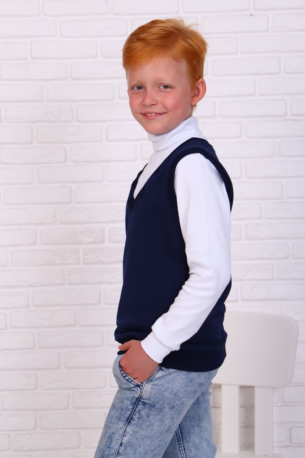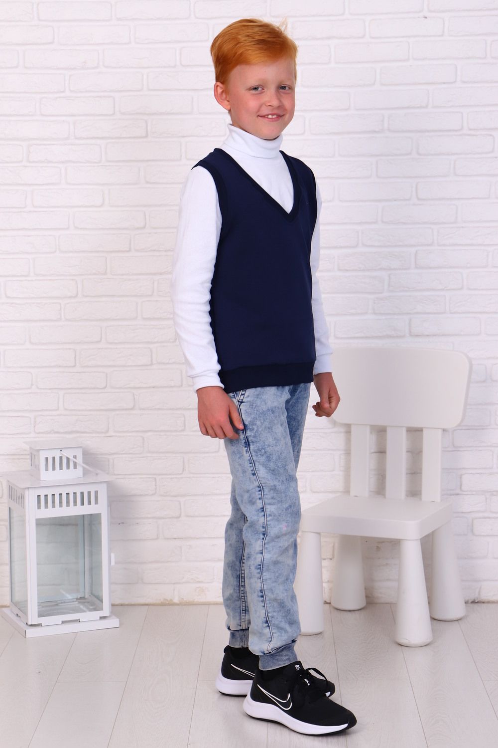 Жилетка для мальчиков, выполненный из мягкого трикотажа на основе хлопка, который дарит комфорт и не сковывает движения, позволяя ребенку быть активным. Модель прямого силуэта, с V-образным вырезом горловины. Горловина, манжеты и пояс оформлены рельефной резинкой. Универсальная вещь, которая подойдет для множества образов, как школьных, так и повседневных в стиле casual. Школьная коллекция
