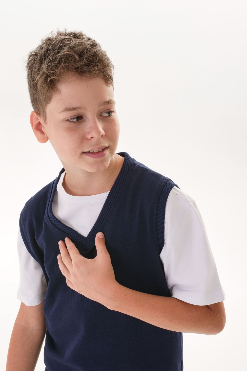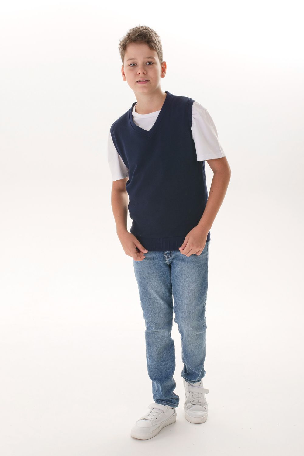 Классический жилет - универсальный предмет гардероба как для мальчика, так и для девочки. Он подойдет для множества школьных, а так же повседневных образов в стиле casual. Удачно сочетается с брюками и с джинсами, на девочках будет отлично смотреться с юбкой. Наша модель не сковывает движения, позволяя ребенку быть активным. Жилет выполнен из качественной турецкой ткани. Модель прямого силуэта, с V-образным вырезом. Горловина, манжеты и пояс выполнены из кашкорсе.