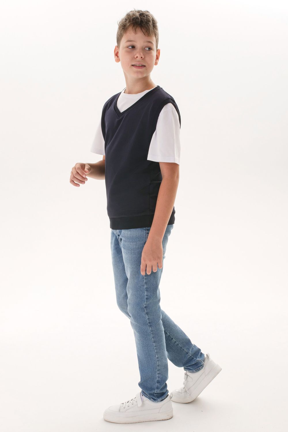 Классический жилет - универсальный предмет гардероба как для мальчика, так и для девочки. Он подойдет для множества школьных, а так же повседневных образов в стиле casual. Удачно сочетается с брюками и с джинсами, на девочках будет отлично смотреться с юбкой. Наша модель не сковывает движения, позволяя ребенку быть активным. Жилет выполнен из качественной турецкой ткани. Модель прямого силуэта, с V-образным вырезом. Горловина, манжеты и пояс выполнены из кашкорсе.