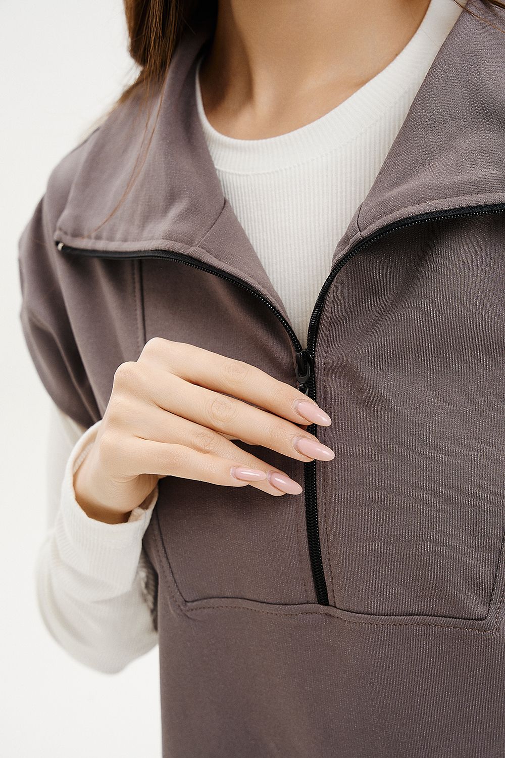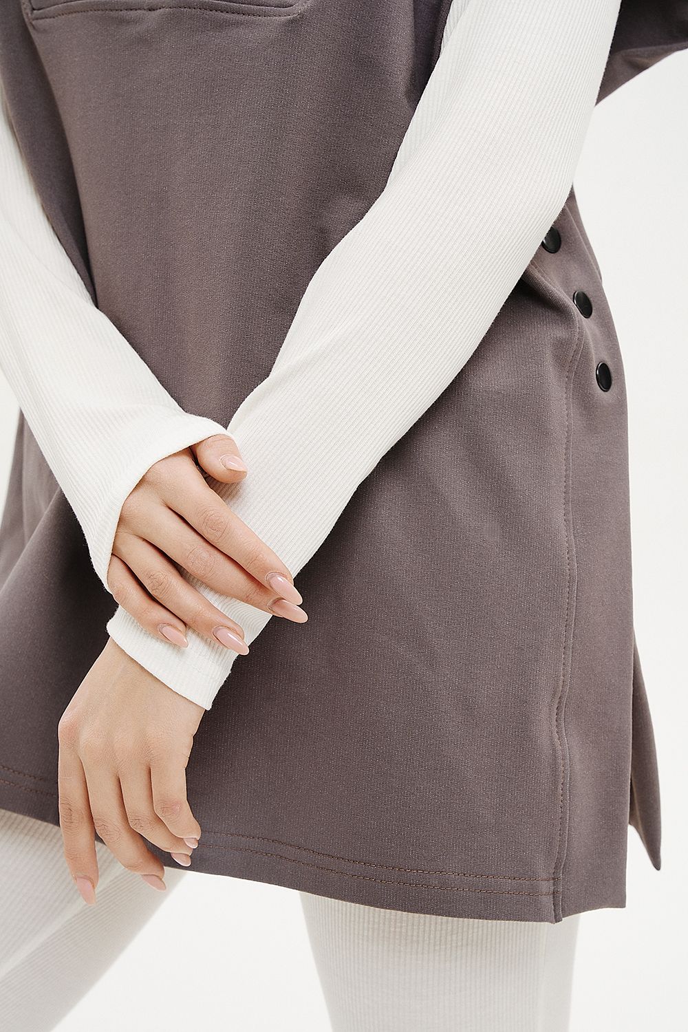 Жилет женский свободного силуэта. Фиксируется кнопками по бокам. Объемный жилет прекрасно подходит на водолазку, а в сочетании с леггинсами сделает ваш образ стильным и уютным. Жилет будет хорош для прогулки осенними и весенними вечерами.