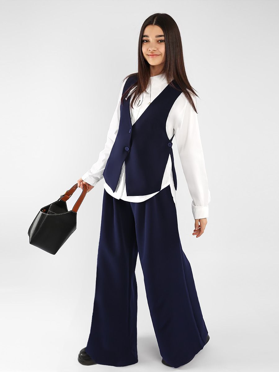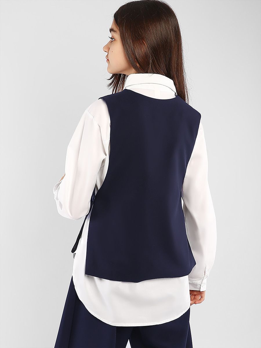 Классический, однобортный жилет для девочки Соль&Перец. Жилет с подкладом, выполнен из износостойкой костюмной ткани «Босс» которая долго сохраняет форму и привлекательный внешний вид. Жилет прекрасно сочетается с юбками и брюками. Подойдет для посещения школы, официального или праздничного мероприятия.