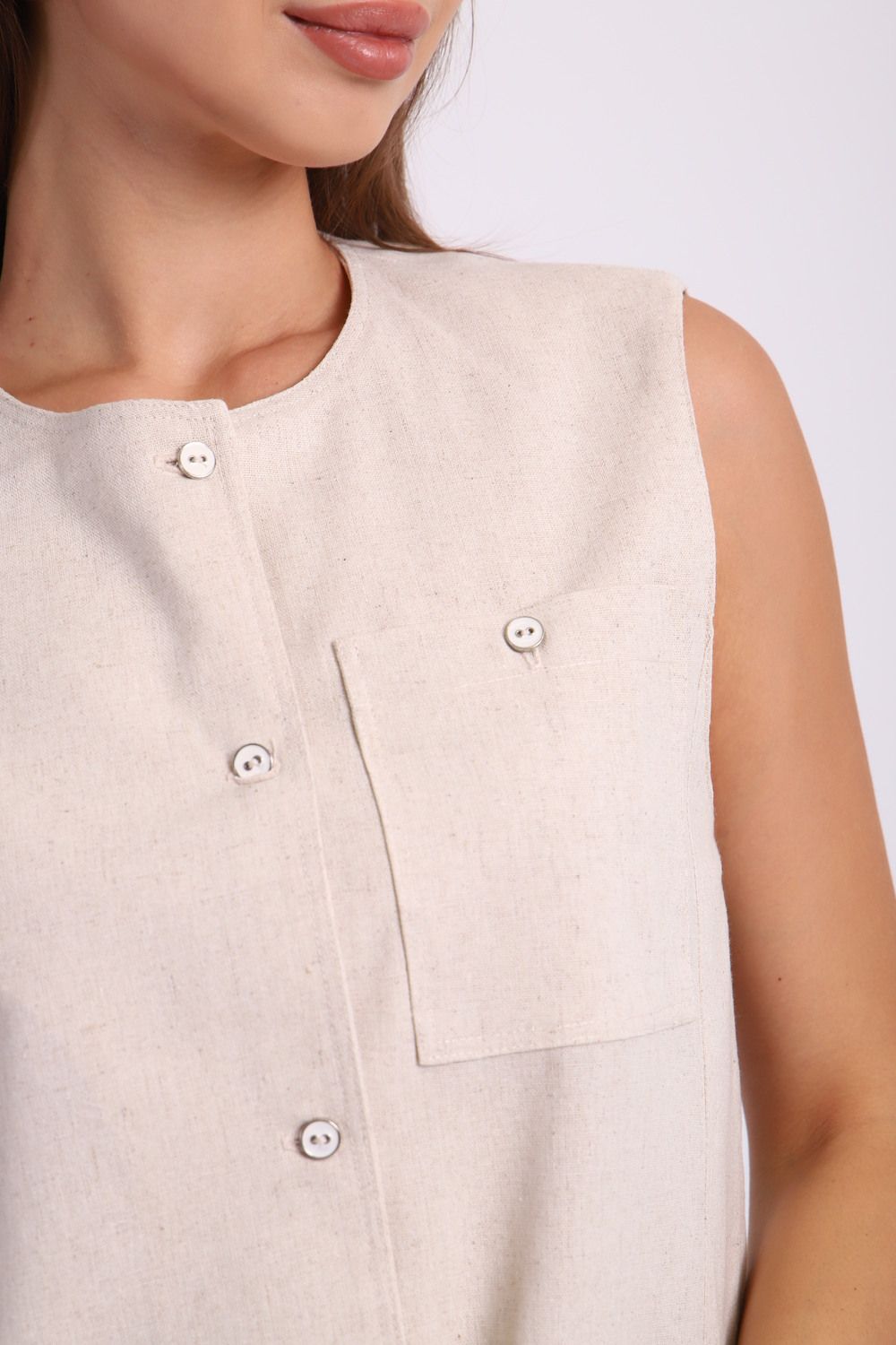 Женская жилетка в классическом дизайне – это стильный элемент образа, который не оставит вас незамеченной! Базовую модель без рукавов отличает свободный, строгий низ и застежка на пуговицы. Популярный предмет гардероба сшит из мягкой и дышащей, но плотной, износостойкой и долговечной ткани, представлен в светлом цвете. Элегантная льняная безрукавка дополнит гардероб взрослых женщин или молодых девушек любого роста: высокого или невысокого, будет удобна в виде повседневной, подойдет для официальных или праздничных мероприятий.