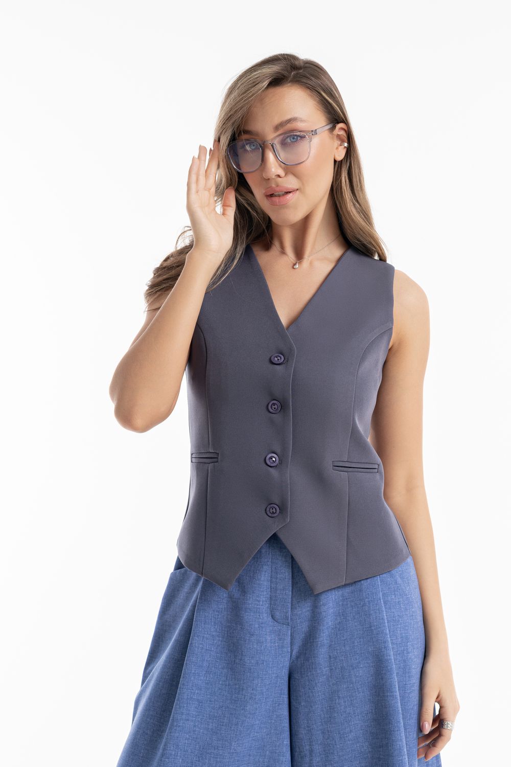 Женский классический жилет на пуговицах - воплощение привлекательности, эстетичности и неотъемлемая вещь базового гардероба любой модницы. Мы создали универсальный жилет как для повседневной носки, так и для офиса. В нем сочетаются все современные тенденции и элементы классического стиля. Женская костюмная жилетка прекрасно подходит под пиджак, к блузке, брюкам и юбкам. Она способна создать, как образ делового стиля, так и более свободного с кроссовками и джинсами.