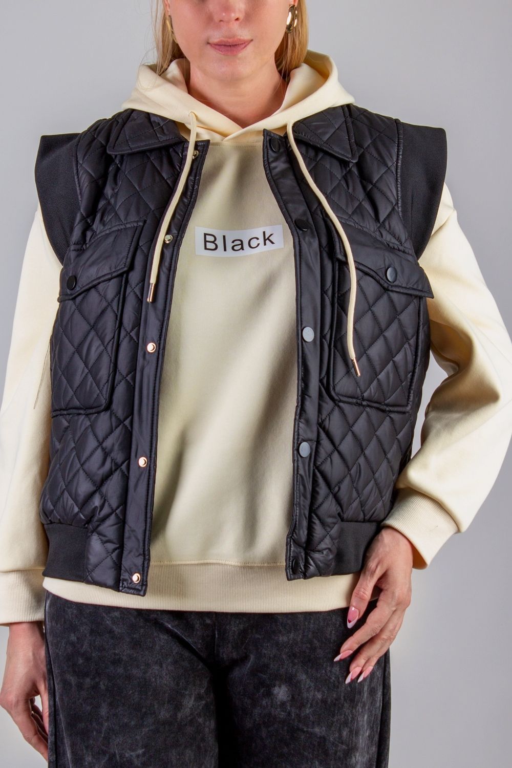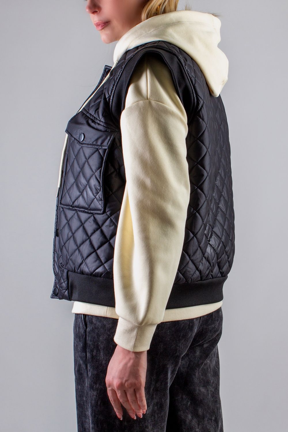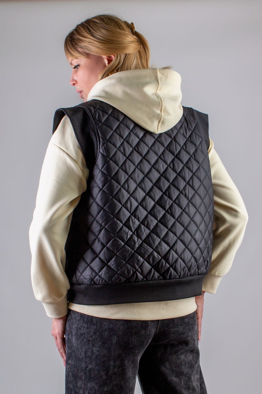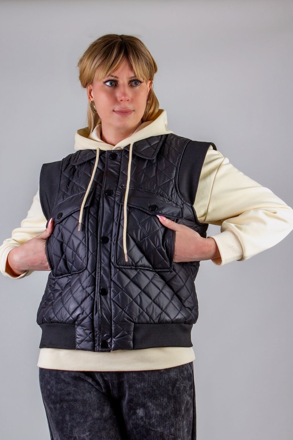 Жилет утепленный безрукавка арт. H025 – универсальный элемент гардероба, сочетающий в себе комфорт, практичность и современный стиль. Модель выполнена из качественных материалов, а простеганная конструкция (не ультрастеп) гарантирует равномерное распределение утеплителя, исключая возможность его скапливания в отдельных участках. Отложенный воротник придаёт жилету аккуратный вид, а застёжка на планке с металлическими кнопками в цвет изделия делает образ целостным и функциональным. Нижний манжет изделия выполнен в трикотажной технике, идеально облегающей и гарантируя свободу движений. В тон изделия оформлены и укороченные «рамочные» рукава-накладки на плечах, которые органично разбавляют строгую стёжку и визуально смягчают силуэт. Это небольшое дизайнерское решение делает жилетку более женственной и универсальной: её легко сочетать как с объёмными свитерами и рубашками, так и с тонкими джемперами.