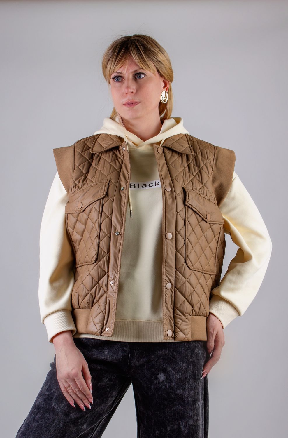 Жилет утепленный безрукавка арт. H025 – универсальный элемент гардероба, сочетающий в себе комфорт, практичность и современный стиль. Модель выполнена из качественных материалов, а простеганная конструкция (не ультрастеп) гарантирует равномерное распределение утеплителя, исключая возможность его скапливания в отдельных участках. Отложенный воротник придаёт жилету аккуратный вид, а застёжка на планке с металлическими кнопками в цвет изделия делает образ целостным и функциональным. Нижний манжет изделия выполнен в трикотажной технике, идеально облегающей и гарантируя свободу движений. В тон изделия оформлены и укороченные «рамочные» рукава-накладки на плечах, которые органично разбавляют строгую стёжку и визуально смягчают силуэт. Это небольшое дизайнерское решение делает жилетку более женственной и универсальной: её легко сочетать как с объёмными свитерами и рубашками, так и с тонкими джемперами.
