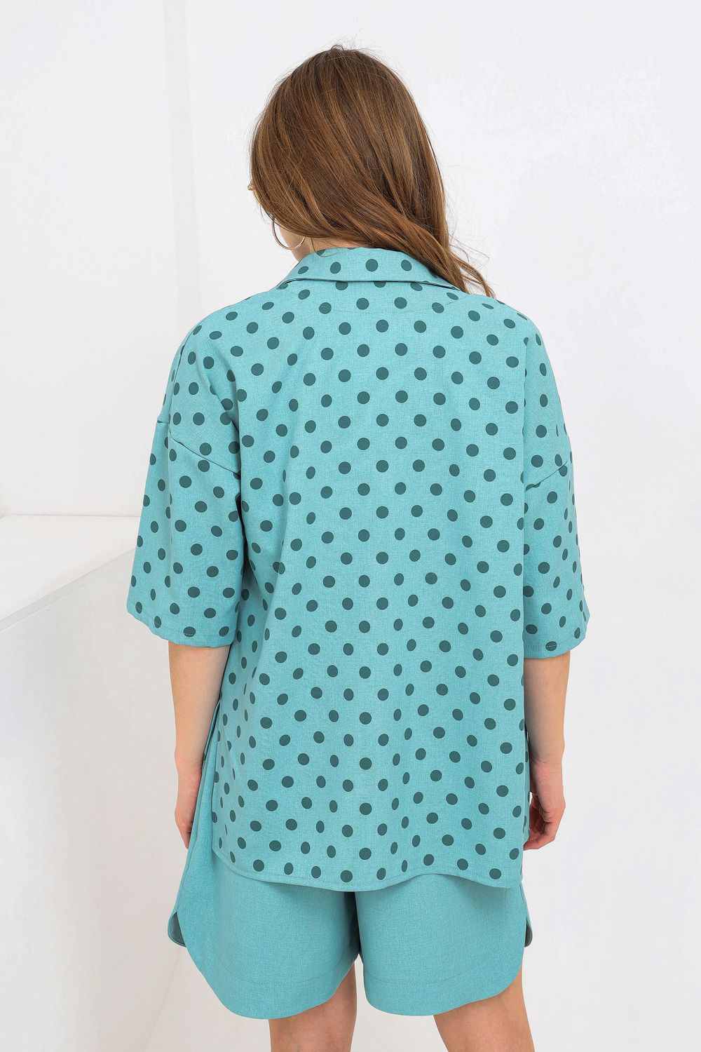 Костюм Лен рубашка + шорты 1252 - горох крупный зеленый