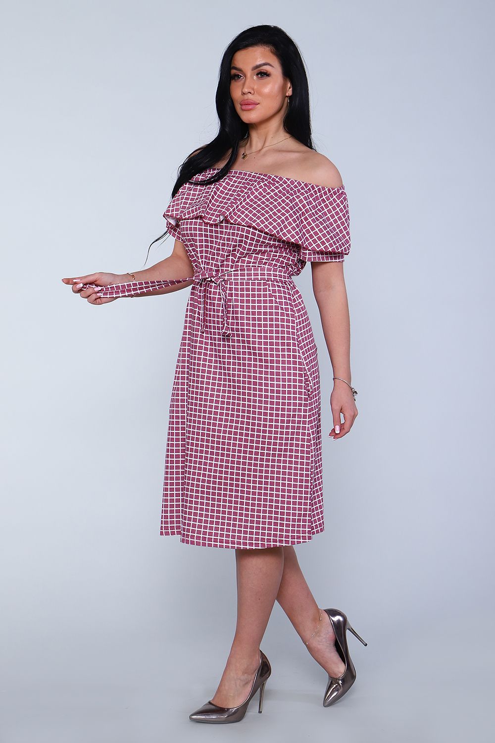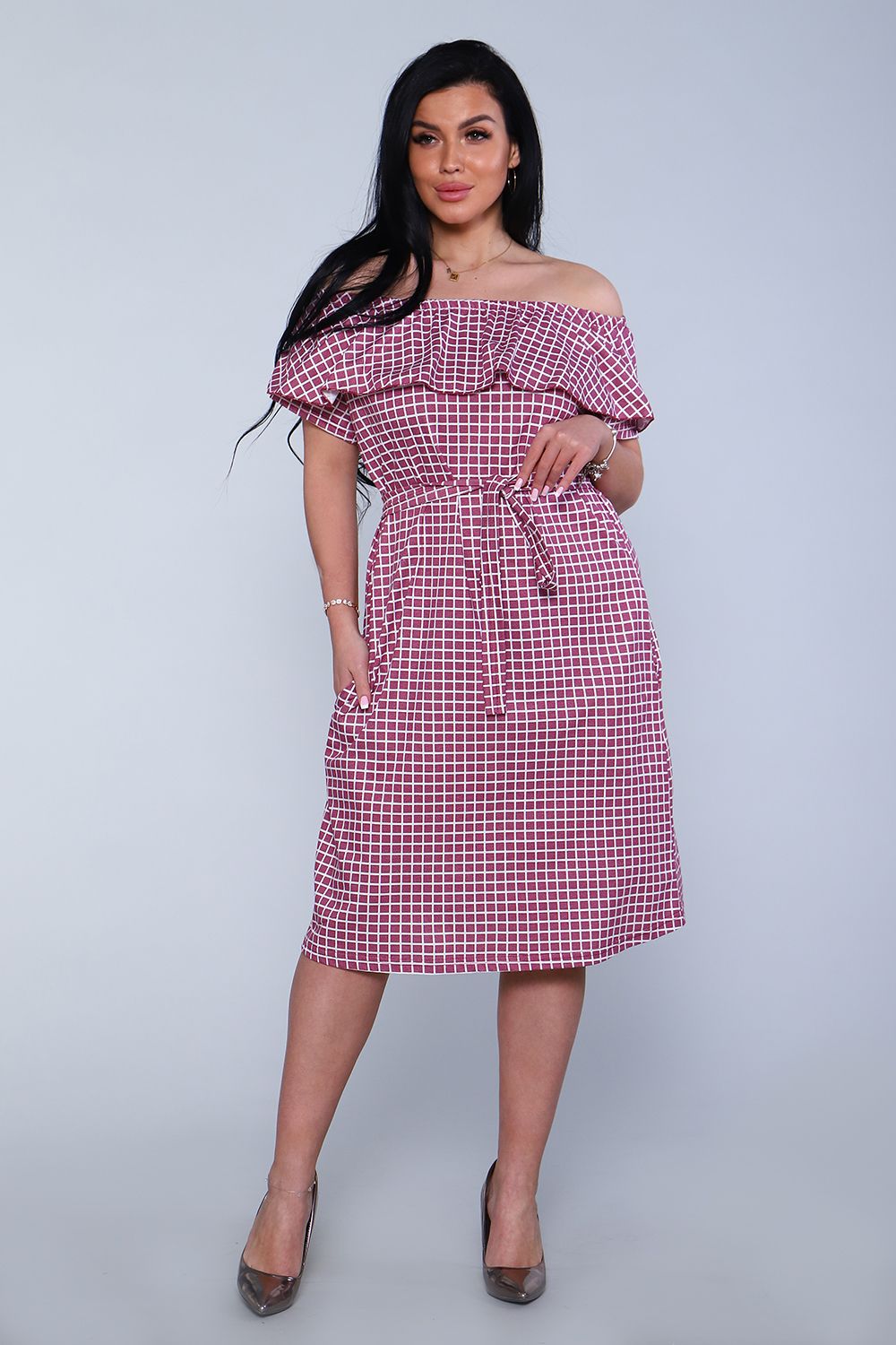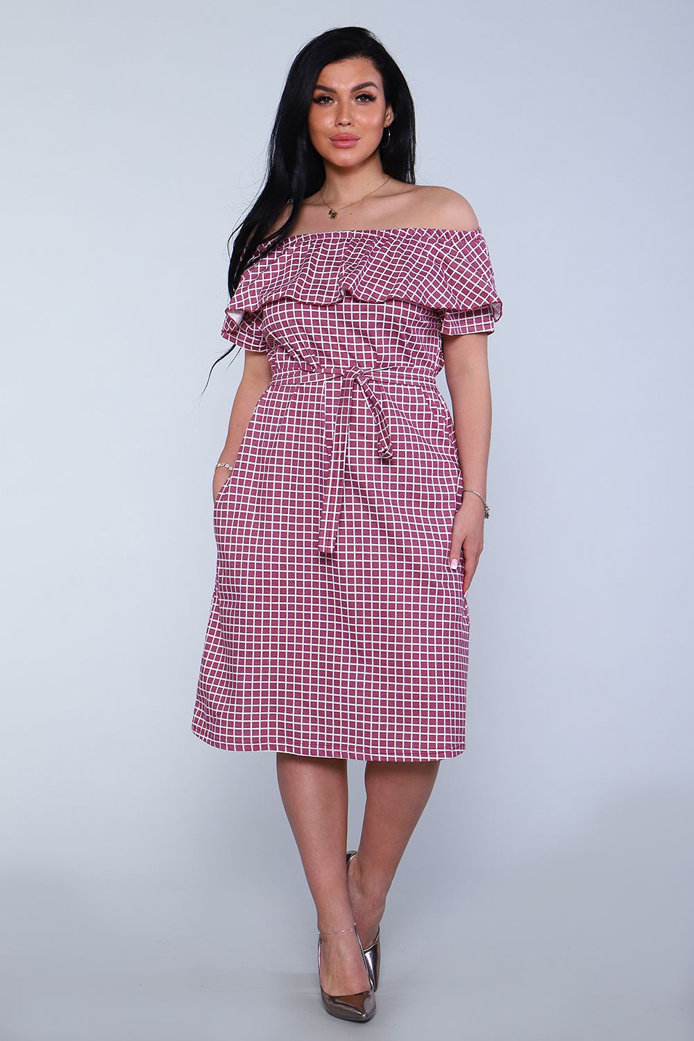Женское платье - сарафан полуприлегающего силуэта с поясом и широкой рюшью на плечах. Выполнен в романтическом стиле из трикотажного полотна, 100% хлопок. Горловина собрана на резинку и отделана широкой оборкой. Короткий рукав, реглан. Длина пояса в 44 размере 155 см, в 62 размере 180 см. Широкий размерный ряд с 44 до 62 размера. Яркие весенне-летние расцветки с принтом по ткани в виде клетки. Карманы в боковом шве, добавляют дополнительный комфорт при носке. Платье можно носить, как со спущенным с плеч верхом, так и с поднятым, либо на одно плечо. Прекрасно подходит беременным, так как пояс не фиксируется на изделии и может приталить платье на любом уровне. В этом нарядном и удобном платье, Вы будете себя чувствовать комфортно в любой обстановке: на прогулке, дома, в отпуске, на пляже, на даче и на любом празднике.
