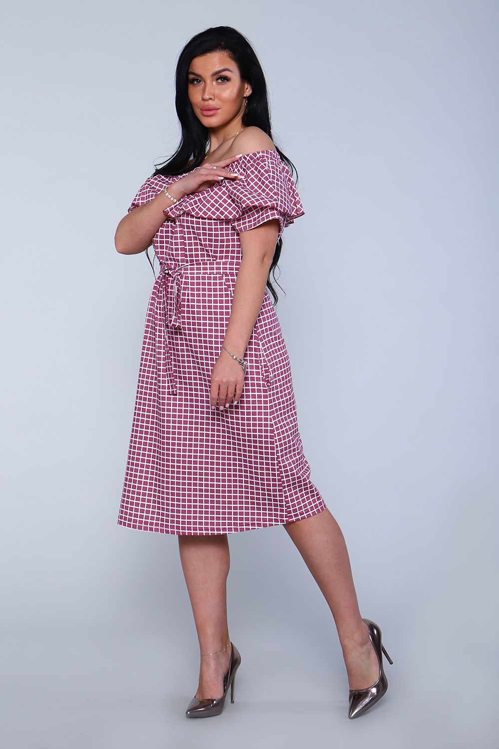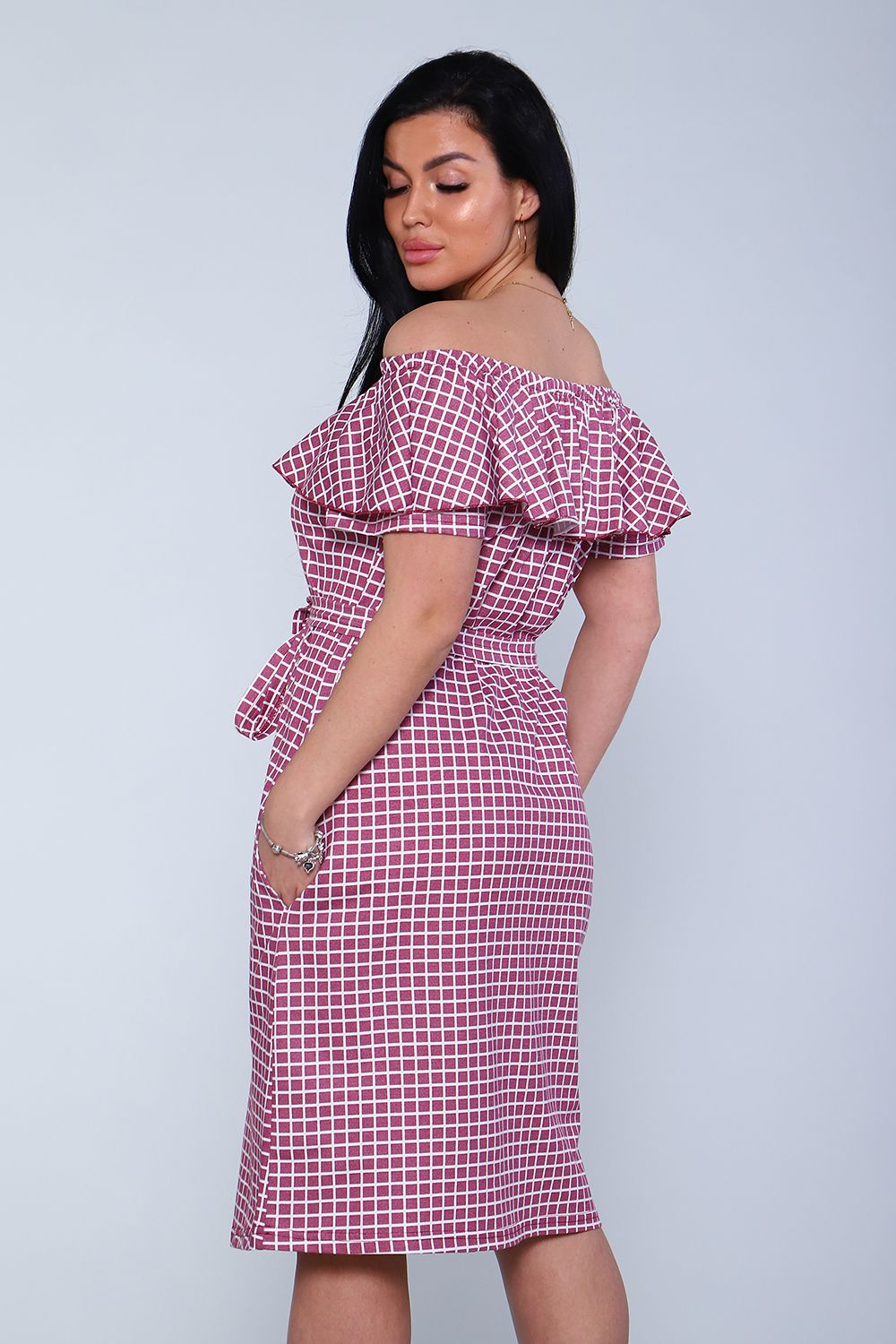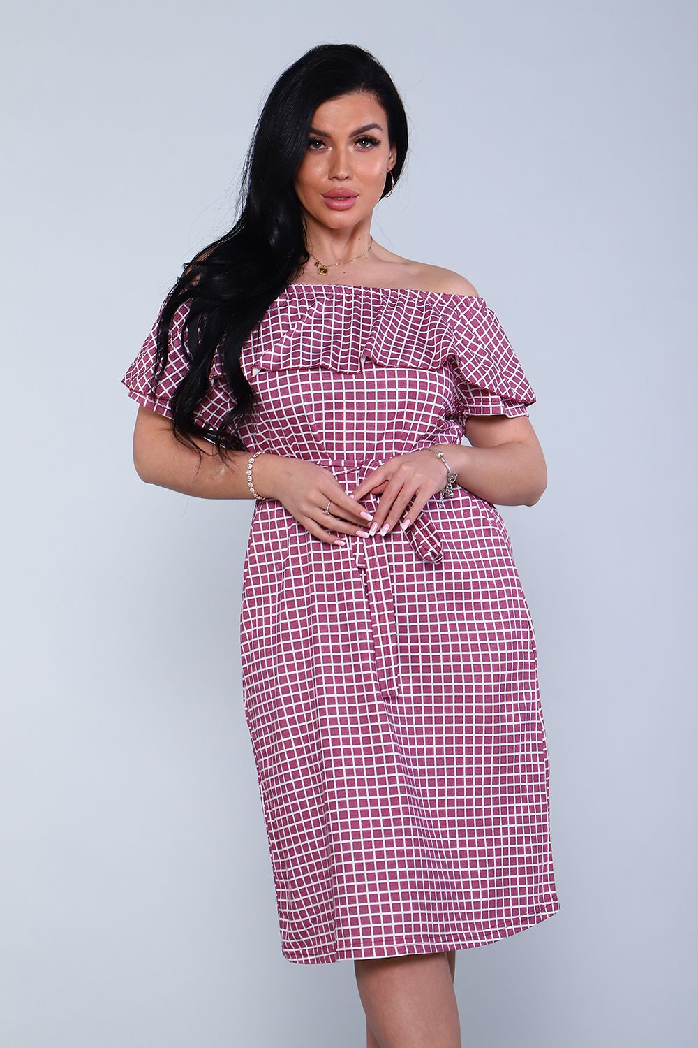Женское платье - сарафан полуприлегающего силуэта с поясом и широкой рюшью на плечах. Выполнен в романтическом стиле из трикотажного полотна, 100% хлопок. Горловина собрана на резинку и отделана широкой оборкой. Короткий рукав, реглан. Длина пояса в 44 размере 155 см, в 62 размере 180 см. Широкий размерный ряд с 44 до 62 размера. Яркие весенне-летние расцветки с принтом по ткани в виде клетки. Карманы в боковом шве, добавляют дополнительный комфорт при носке. Платье можно носить, как со спущенным с плеч верхом, так и с поднятым, либо на одно плечо. Прекрасно подходит беременным, так как пояс не фиксируется на изделии и может приталить платье на любом уровне. В этом нарядном и удобном платье, Вы будете себя чувствовать комфортно в любой обстановке: на прогулке, дома, в отпуске, на пляже, на даче и на любом празднике.