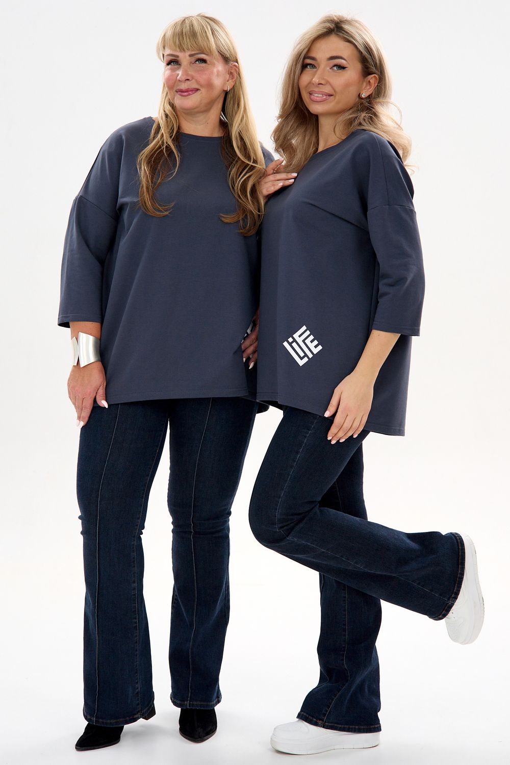 Лонгслив это стильная и комфортная женская кофта, идеально подходящая для одежды стандартных и больших размеров. Лонг это отличный выбор для женщин, которые ценят стиль и комфорт. Изготовленный из футера двунитки, он обеспечивает хорошую воздухопроницаемость. Идеальная кофточка для девушек, подходящая для различных возрастных групп. Независимо от того, с каким образом вы решите носить, он будет отлично сочетаться с различной одеждой, создавая стильные и модные образы. Стильный лонгслив оверсайз с рукавом 3/4 это оптимальный вариант одежды второго слоя для осени и зимы, именно такая ткань позволит найти лучший баланс между тепло и не жарко. Отлично подходит для повседневной носки и вечерних мероприятий. Данная туника без горла может стать в вашем гардеробе отличной одеждой для дома, а также для офиса и под верхнюю одежду. Хотя в ней не жарко даже в тёплую погоду. Трикотажный свитшот в меру удлиненный. Лонгслив абсолютно не стесняет движений и подчеркивает вашу свободу. Классический лонгслив легко сочетать с другими предметами гардероба.