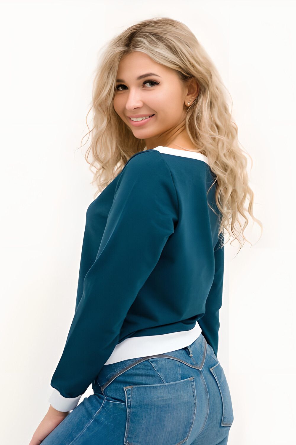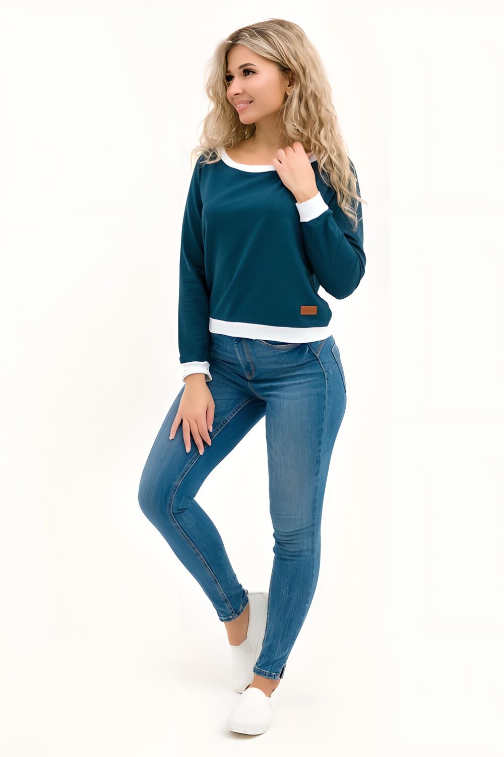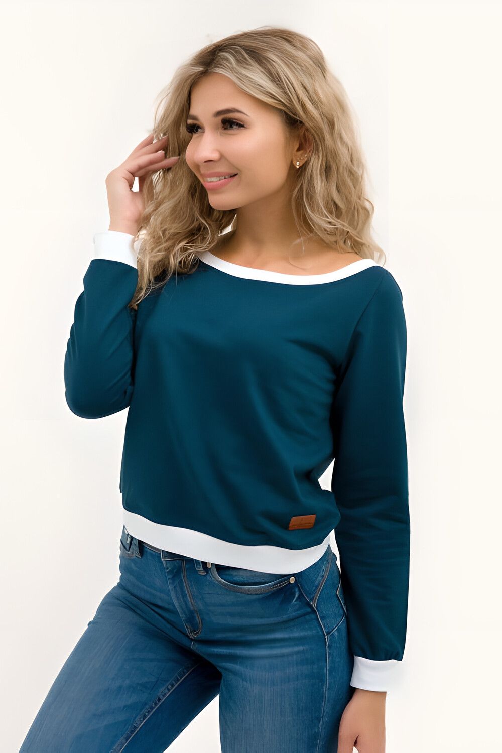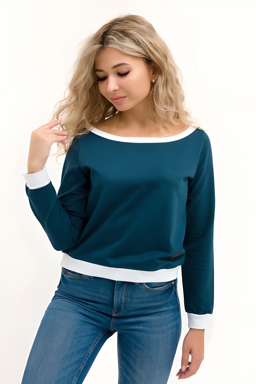Кофта лодочка женская с округлым вырезом - петроль