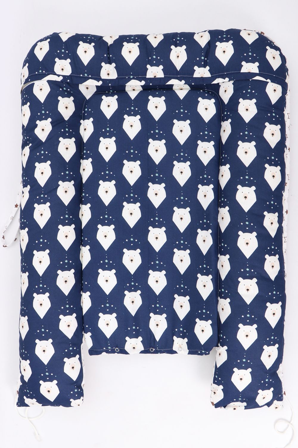 Кокон-гнездышко со съемным чехлом арт. КОГЗ-01/белый-мишка-синий