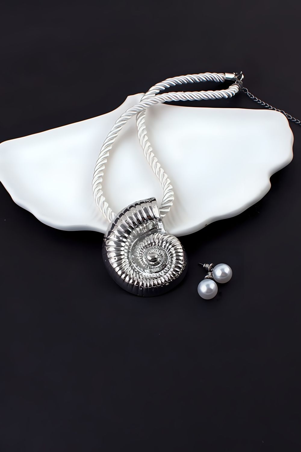 Колье "Морская симфония" на шнурке + Подарок - серебро