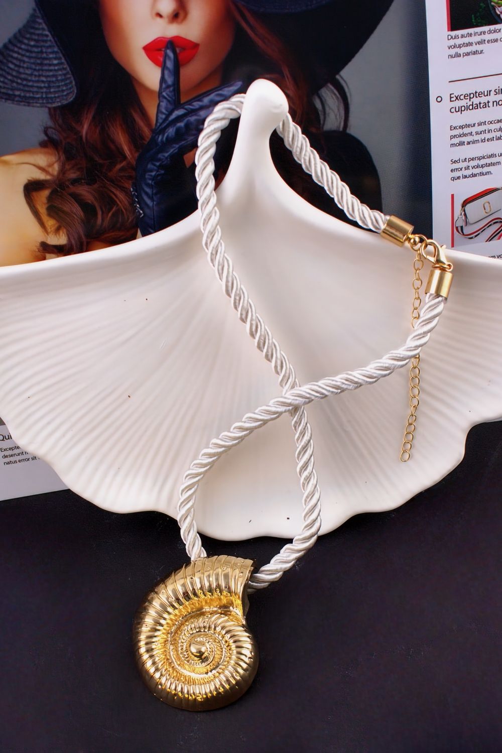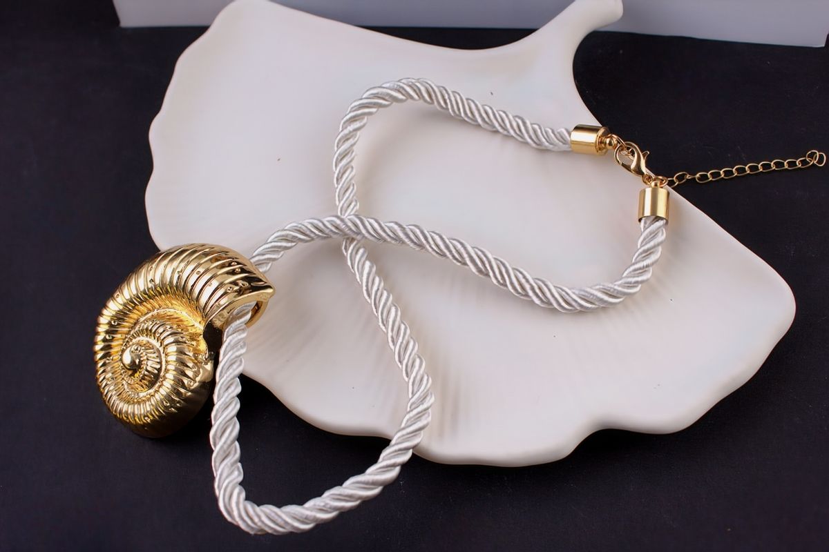 В центре композиции находится ракушка из золотистого металла, которая великолепно подчеркнет ваш загар и добавит яркости летним образам. Кулон с морской раковиной становится базовым украшением для повседневного ношения, для лета и, особенно для пляжа, привнося элегантности и характера в ваш стиль. Подвеска в виде чокера на шею с крупным кулоном раковины — лучшее украшение на сезон весна-лето 2025 года. Ожерелье состоит из белого шнурка и подвески в виде большой раковины золотистого цвета. Размер ракушки составляет 5x4 см, а длина хлопкового каната — 40 см с дополнительными 7 см для увеличения размера. Выполненное из качественного бижутерного сплава это украшение отлично дополнит любые летние образы. Прочный шнурок, выполненный в стиле канатного плетения, придаёт изделию завершенный и стильный вид. Вы не останетесь незамеченной в любой компании с этим аксессуаром. Чокер с ракушкой станет настоящим акцентом, подчеркивающим вашу индивидуальность, и может стать прекрасным знаком внимания для близкого человека. Носите его сами или дарите как символ красоты и уникальности — это украшение станет настоящим сокровищем в вашей коллекции!