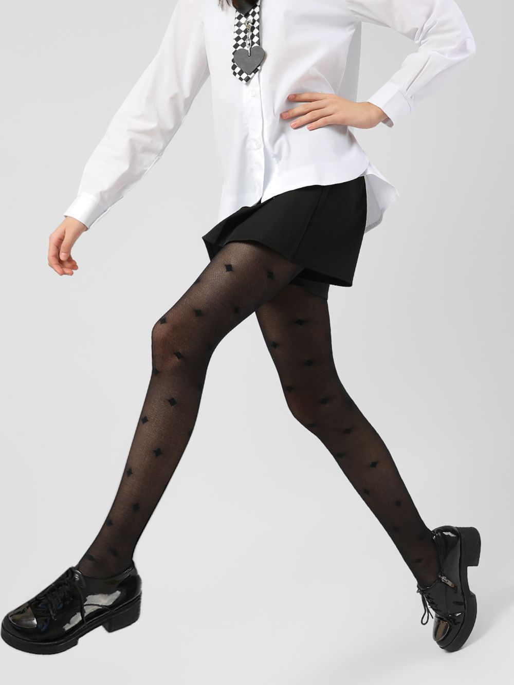 Детские колготки для девочек бренда Соль&Перец 40 den с фантазийным рисунком «ромб» безупречны на каждый день. Классические детские колготки без шортиков, с укрепленным мыском подойдут для повседневного использования в школе, к праздничному наряду и на выступление. Капроновые колготки для девочки выполнены из микросетки обладающей повышенной прочностью, не раздражают кожу, мягкие на ощупь, эластан с обкрученной нитью обеспечивает идеальное облегание по ножке. Лёгкие прозрачные практически неощутимые матовые капронки актуальны для девушки подростка. Отличный подарок ребёнку на любой праздник и просто так. Подарите девочке фантазийные капроновые колготки - символ женственности и красоты.