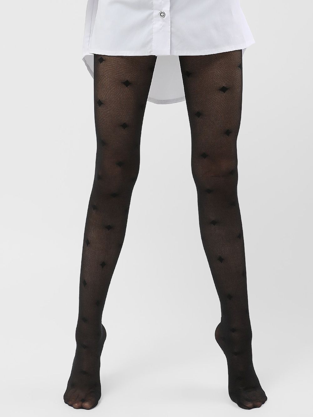 Колготки из микросетки с рисунком ромб SP1112 - черный