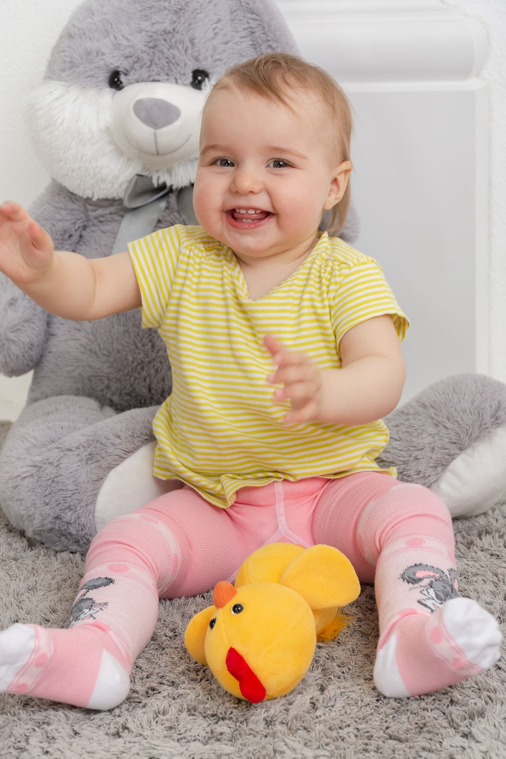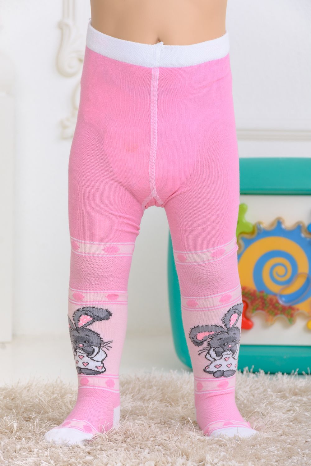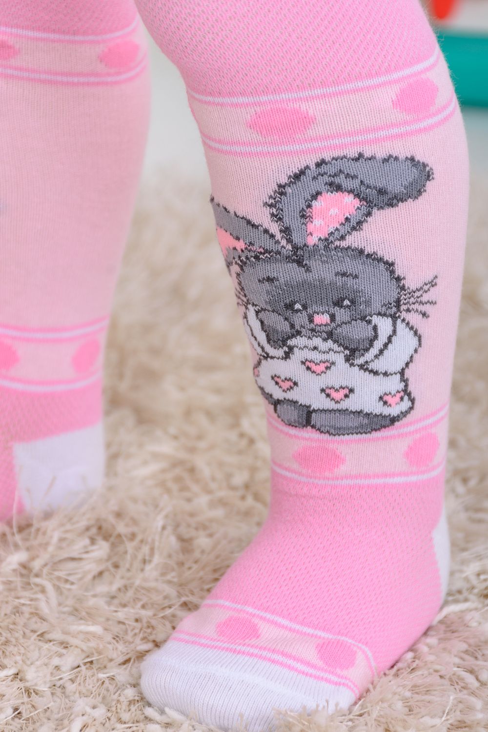 Милые колготки для самых маленьких. Нежные цвета - розовый и салатовый, спереди рисунок - симпатичный зайчик, сзади - сердечко