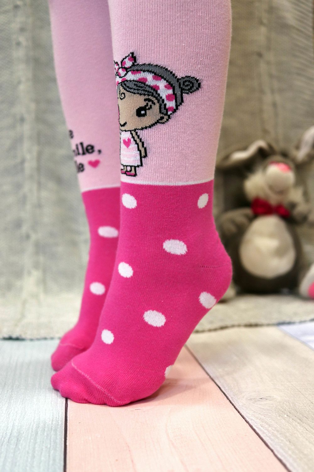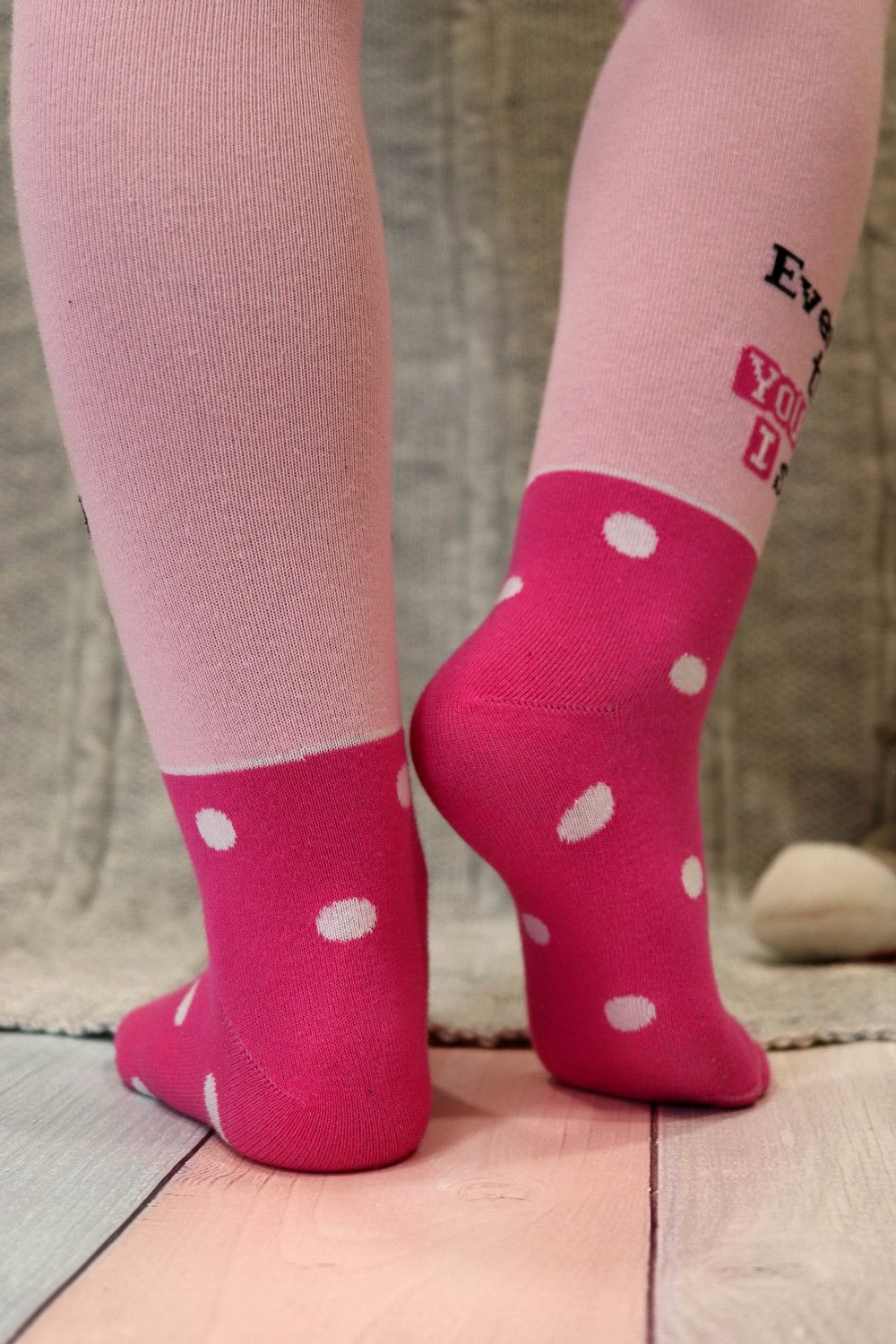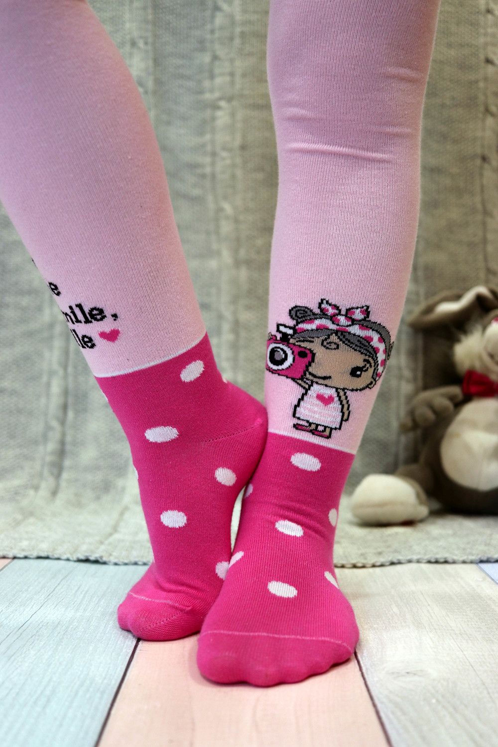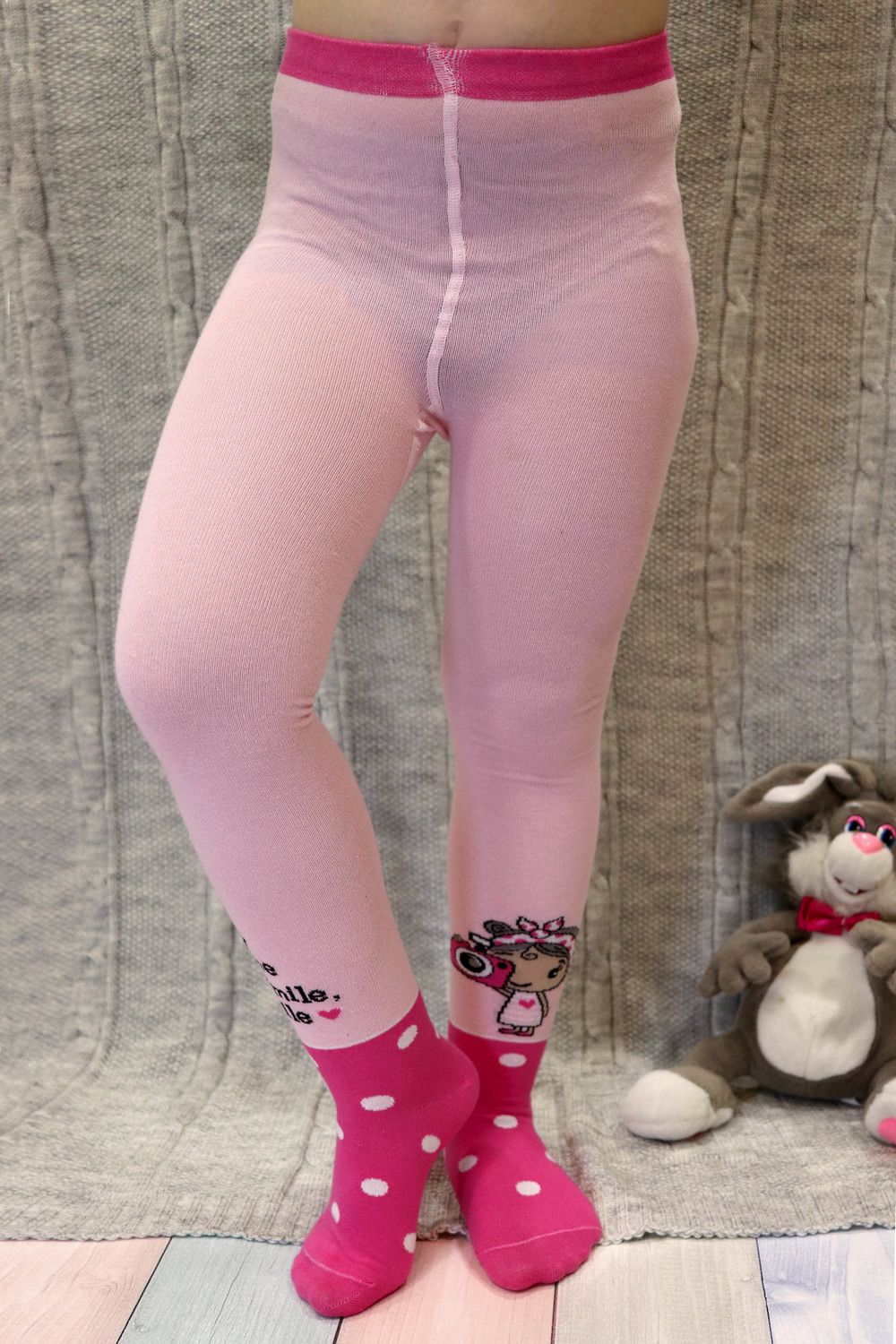 Яркие детские колготки с рисунком в виде девочки с фотоаппаратом и надписью "Каждый раз, когда ты улыбаешься - я улыбаюсь"