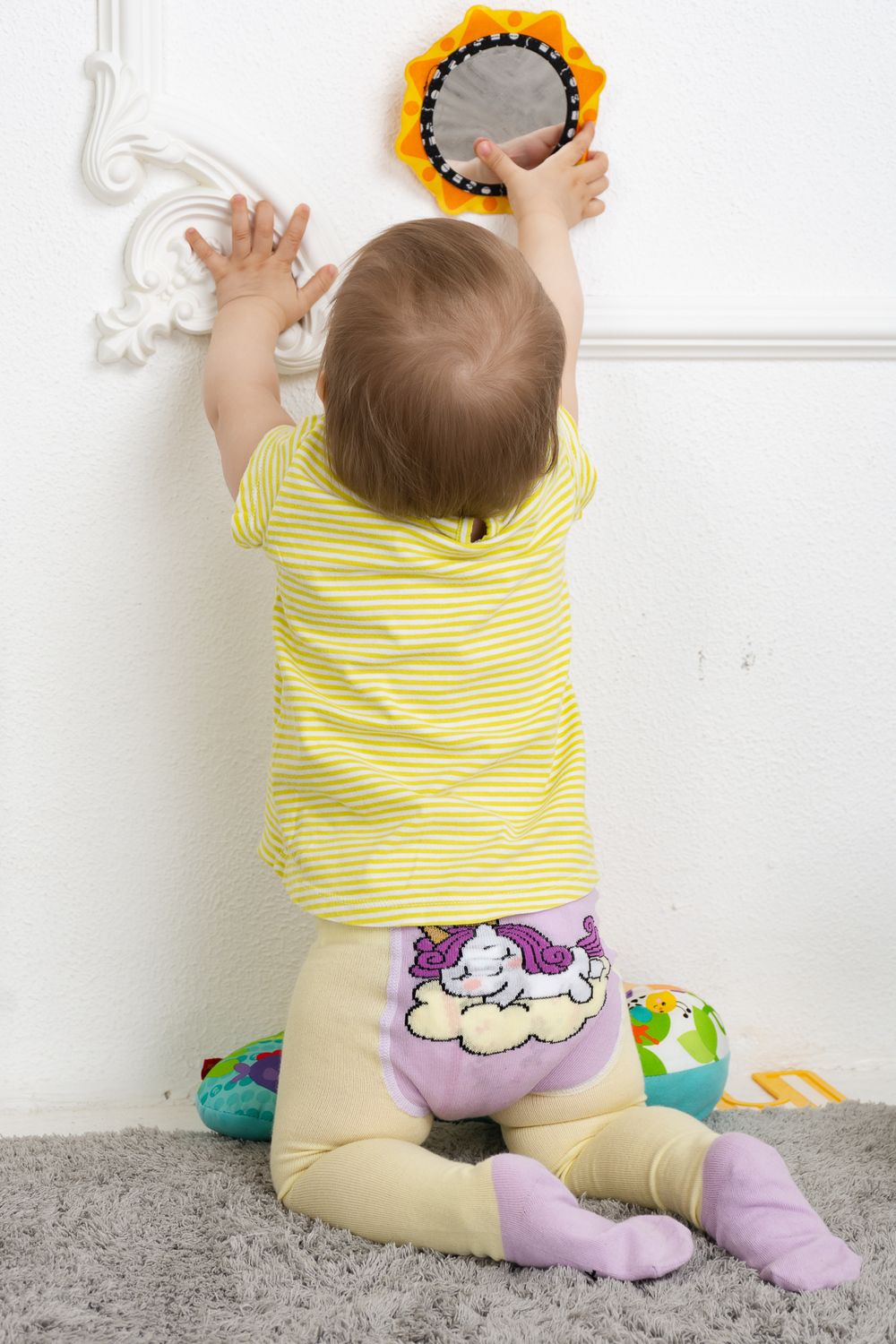Очаровательные колготки для малышей. Снизу - имитация носочка с рисунком в виде глазок, сзади вывязан спящий единорог.