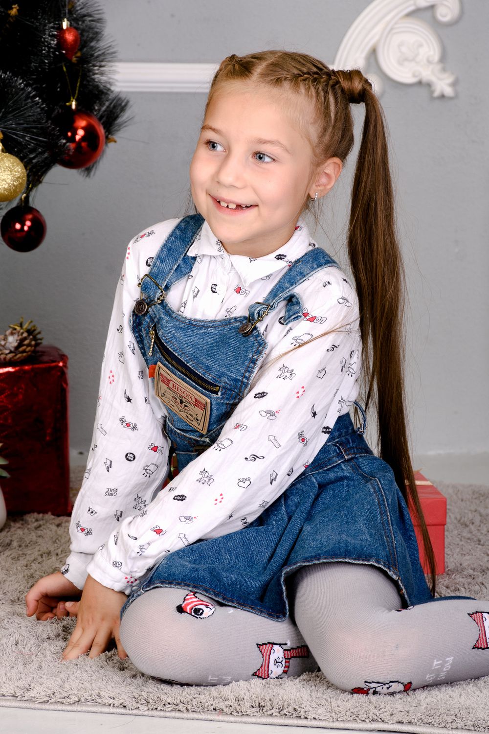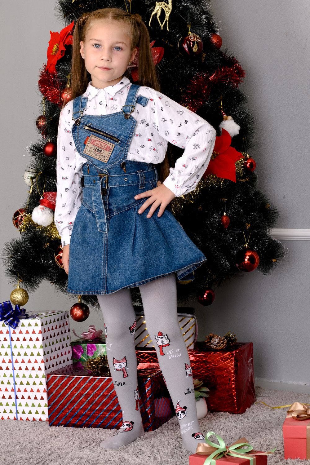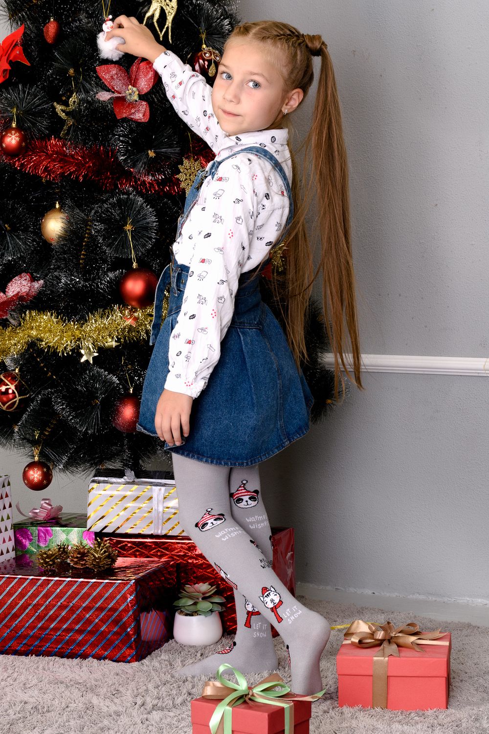 Однотонные детские колготки с новогодними рисунками и надписями