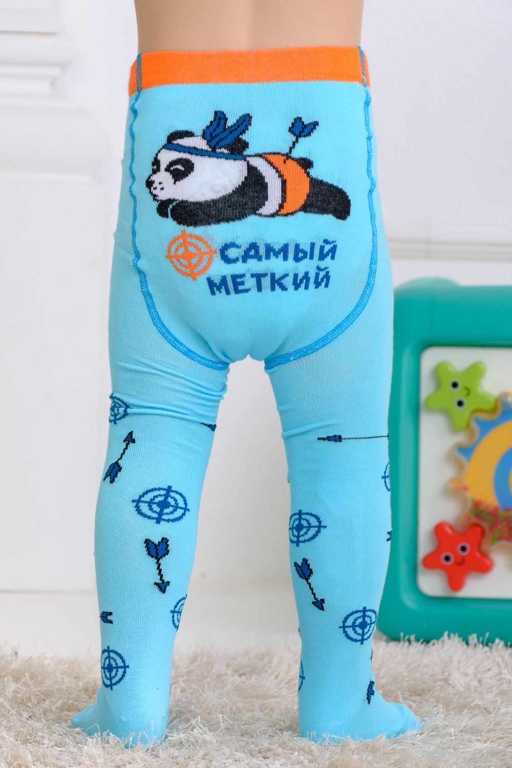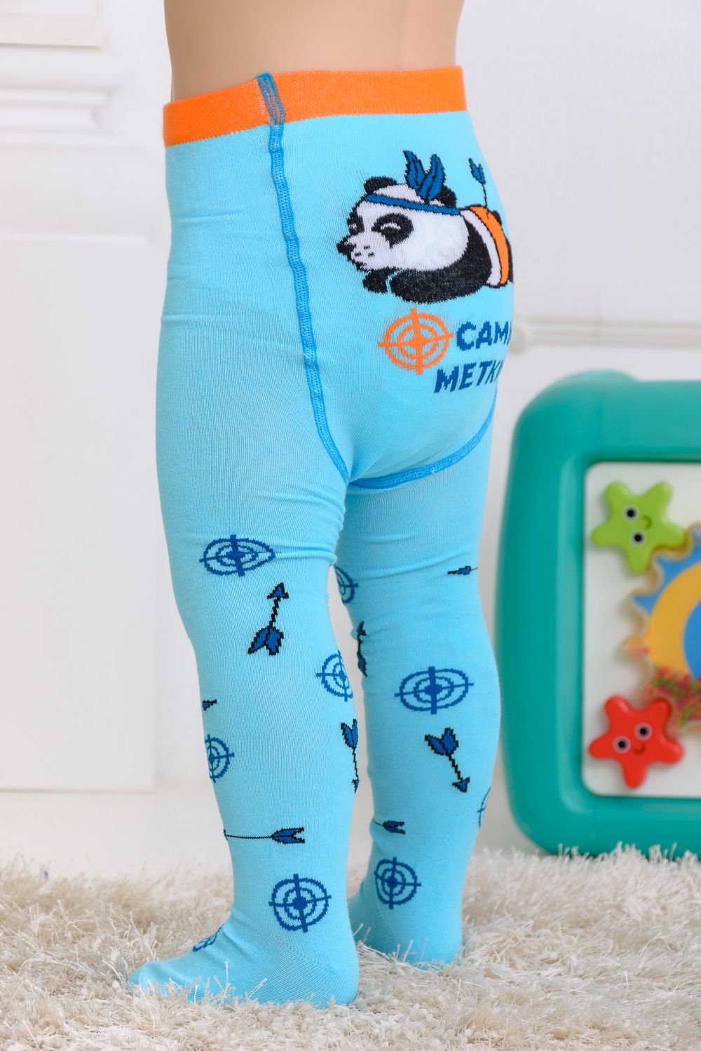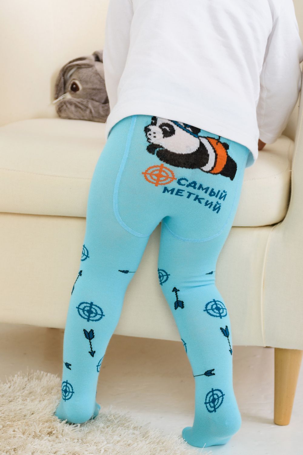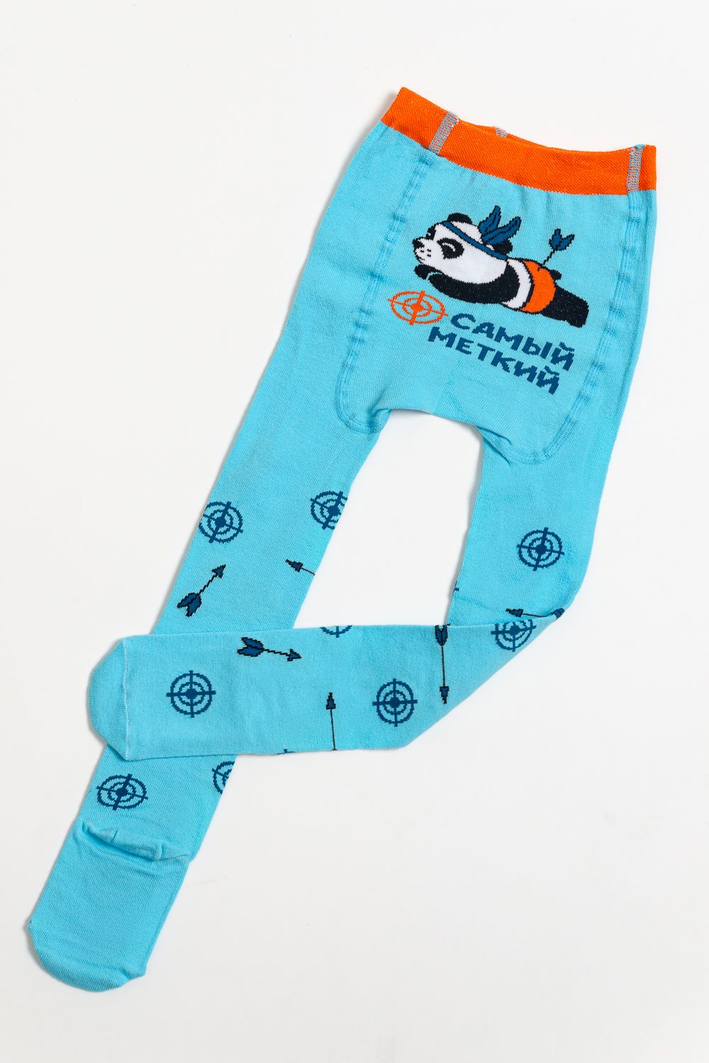 Детские колготки для мальчиков. По всей поверхности колготок вывязаны рисунки в виде стрел и мишеней, сзади - панда и надпись "Самый меткий"