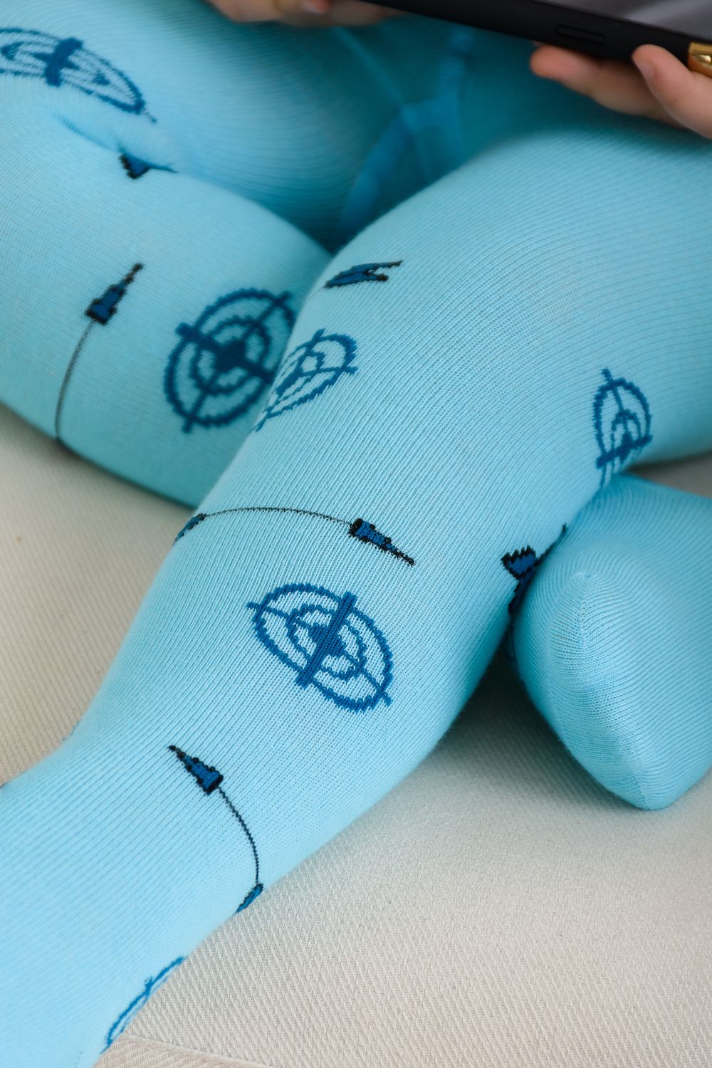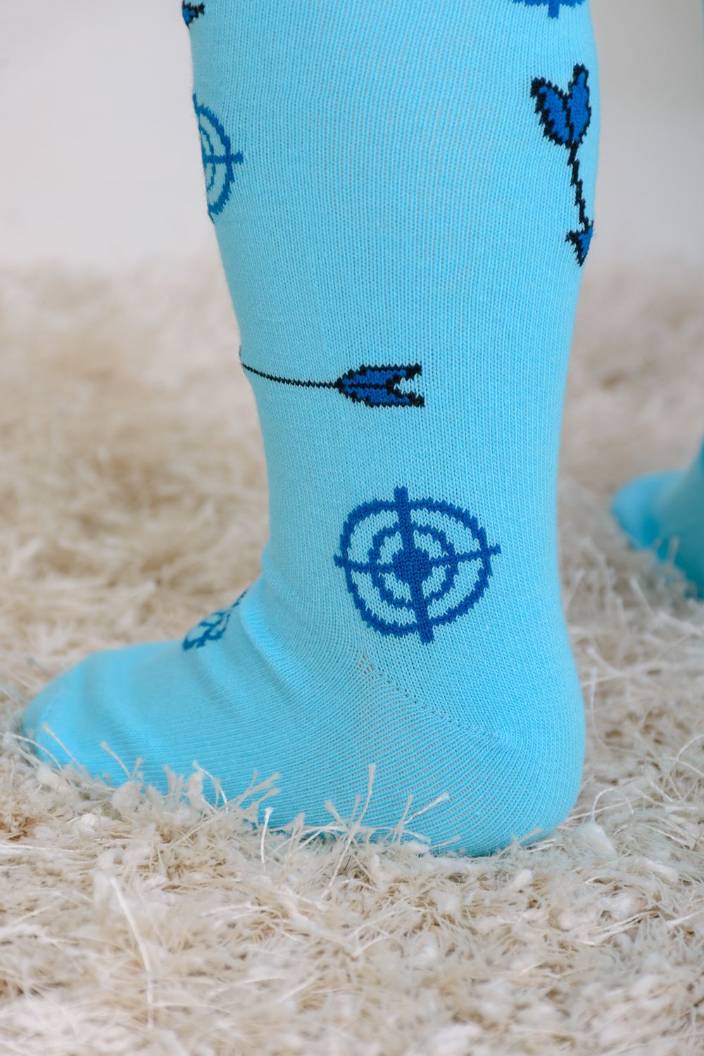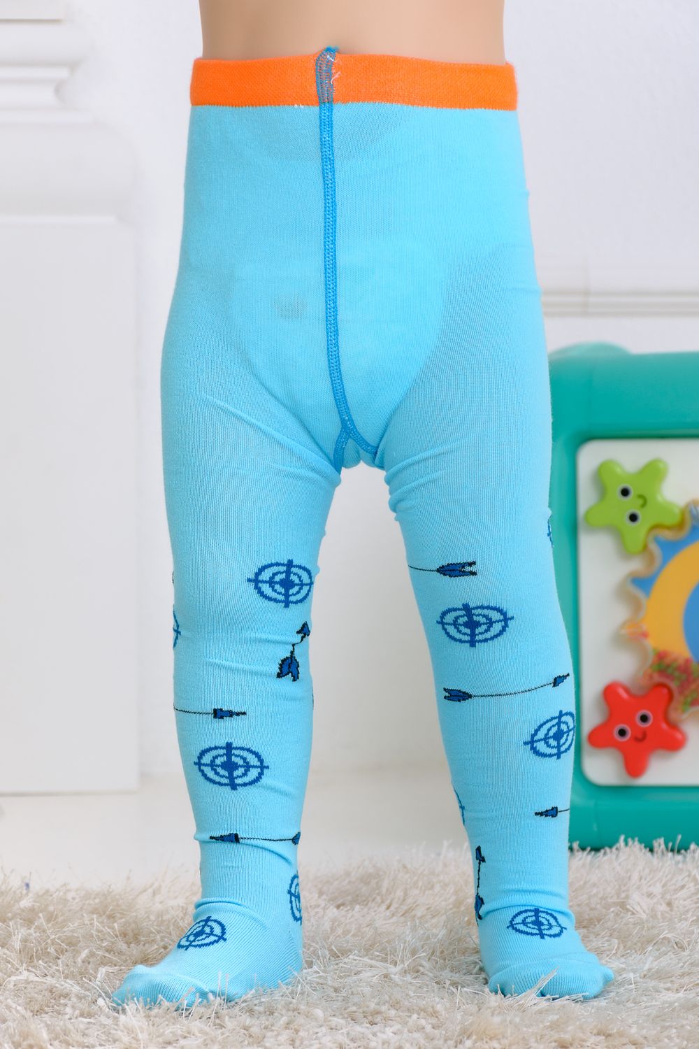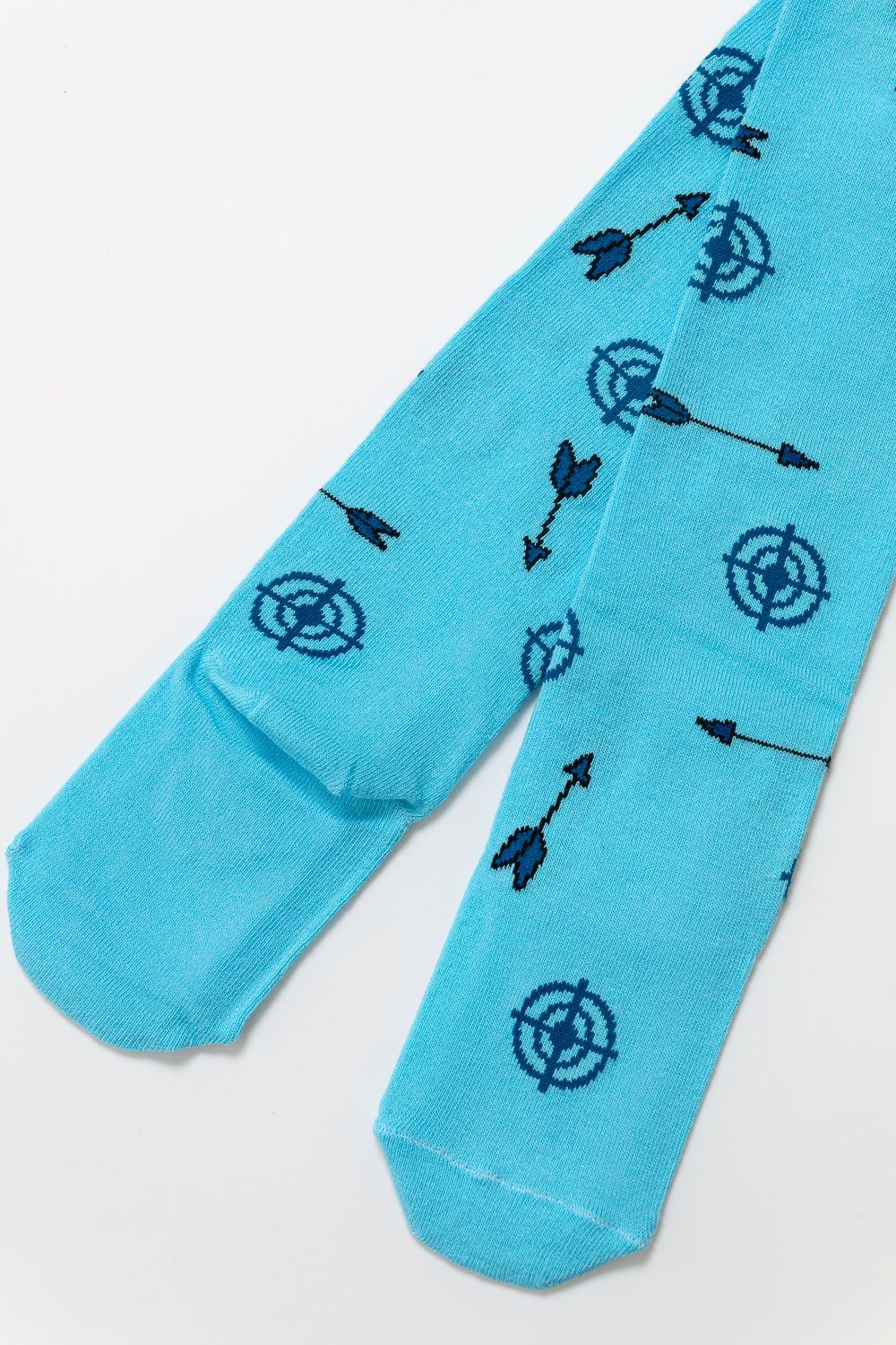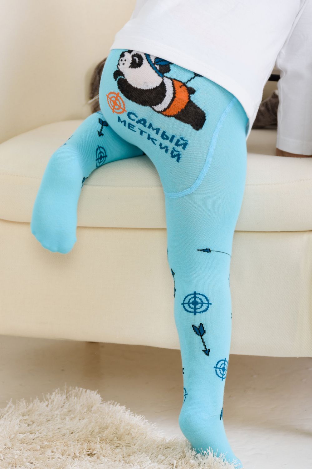 Детские колготки для мальчиков. По всей поверхности колготок вывязаны рисунки в виде стрел и мишеней, сзади - панда и надпись "Самый меткий"