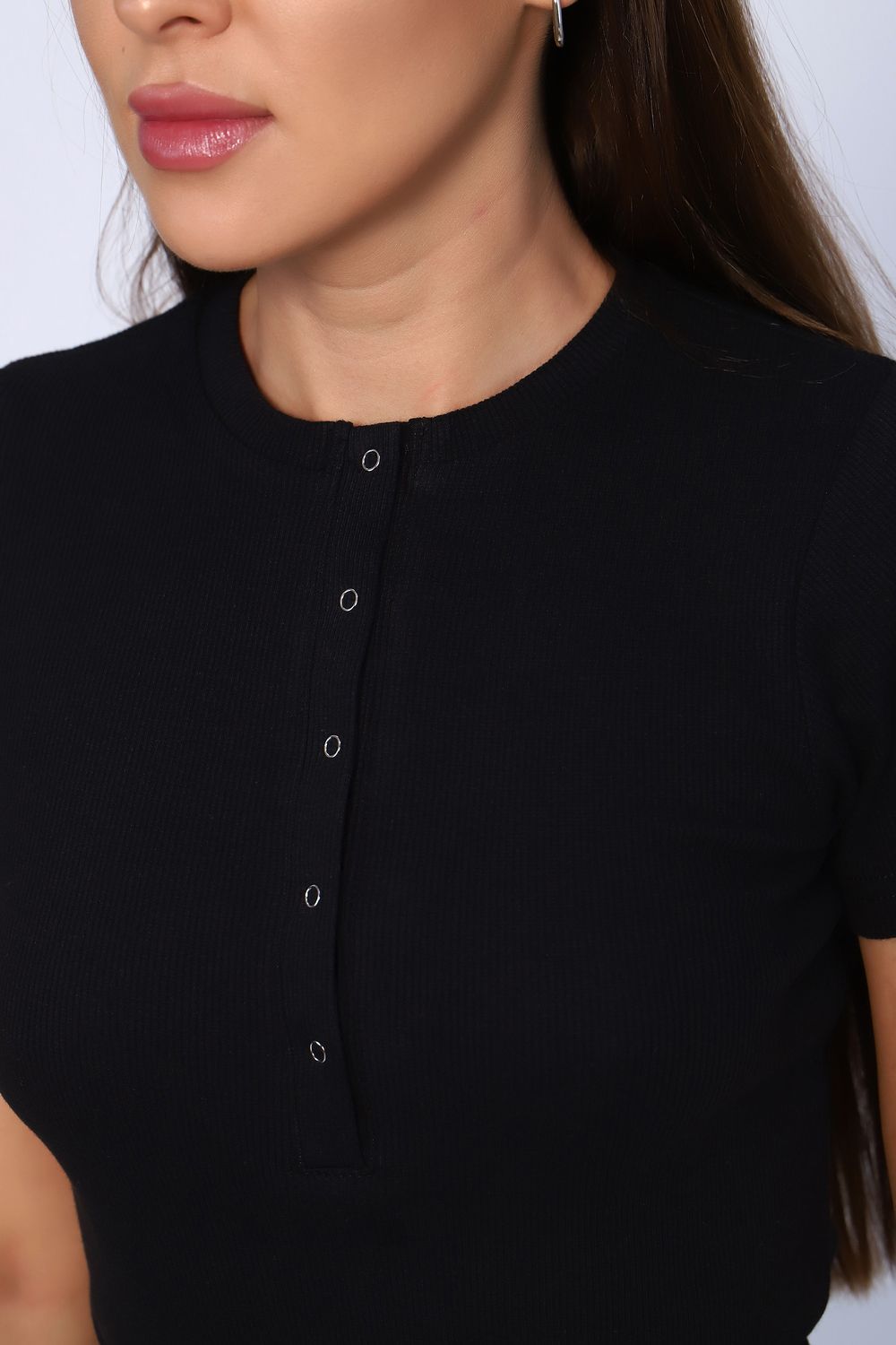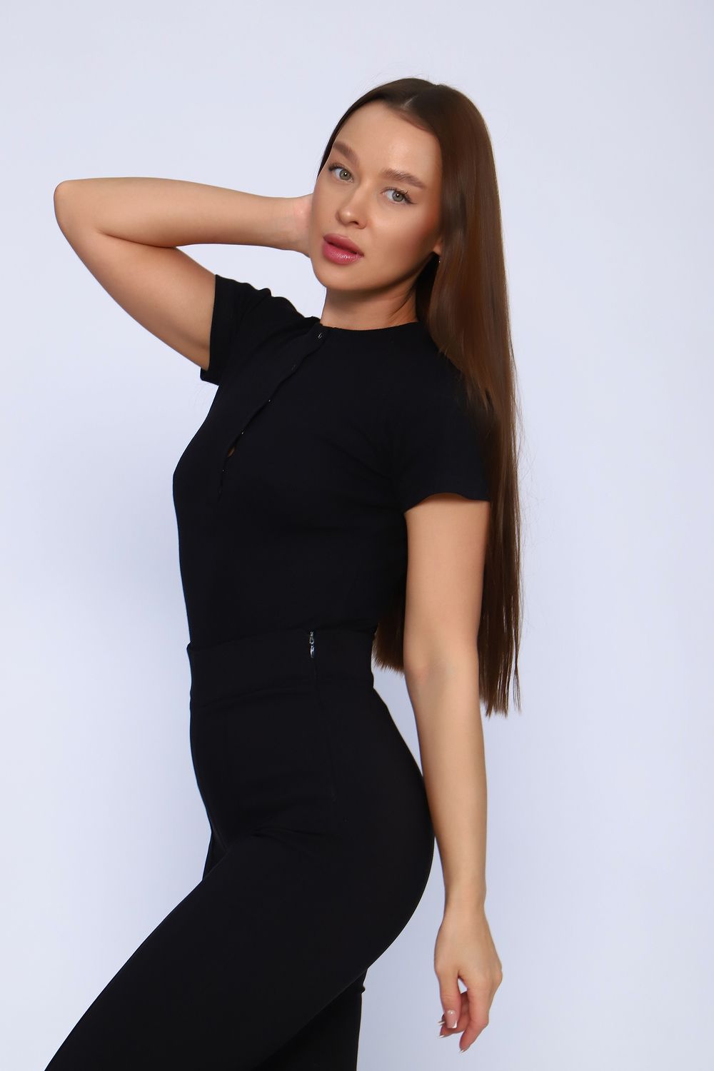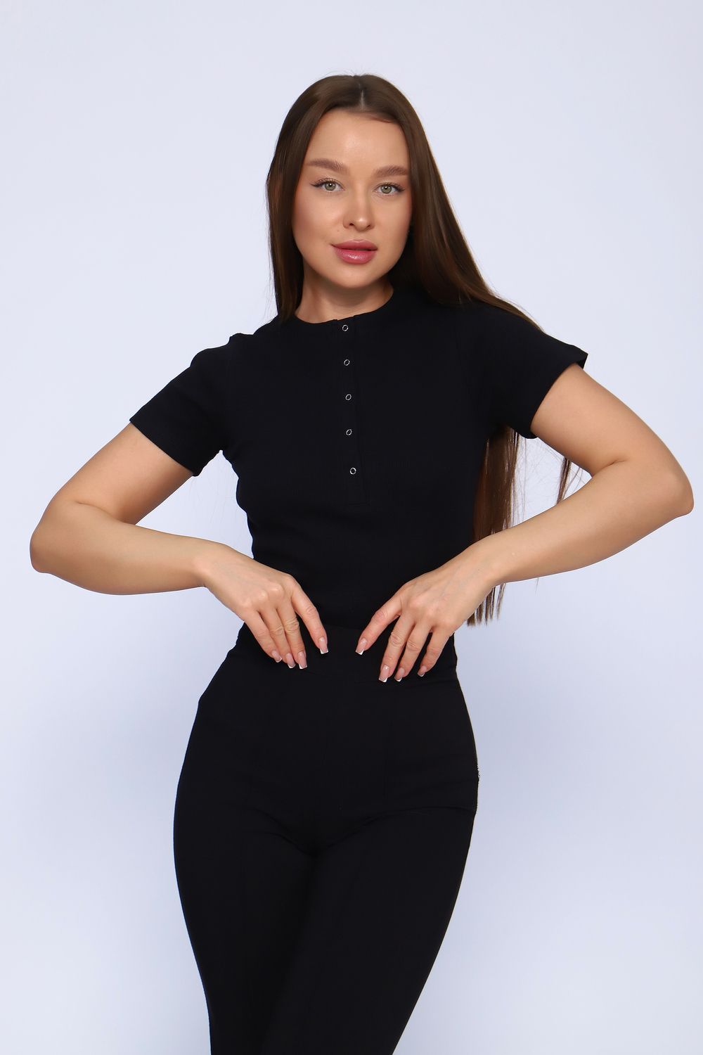 Комбидресс с коротким рукавом - идеальная базовая вещь в вашем гардеробе. Выполнен из мягкой, эластичной ткани рибана с глубоким v-образным вырезом на кнопках, позволяет носить его как повседневно, так и создавать вечерние, нарядные, праздничные образы на выход. В нижней части изделия застежка - кнопки, которые обеспечивают идеальную и комфортную посадку. Однотонное боди для женщин отлично подойдет в сочетании с юбкой и джинсами, так же может использоваться как нательное белье.