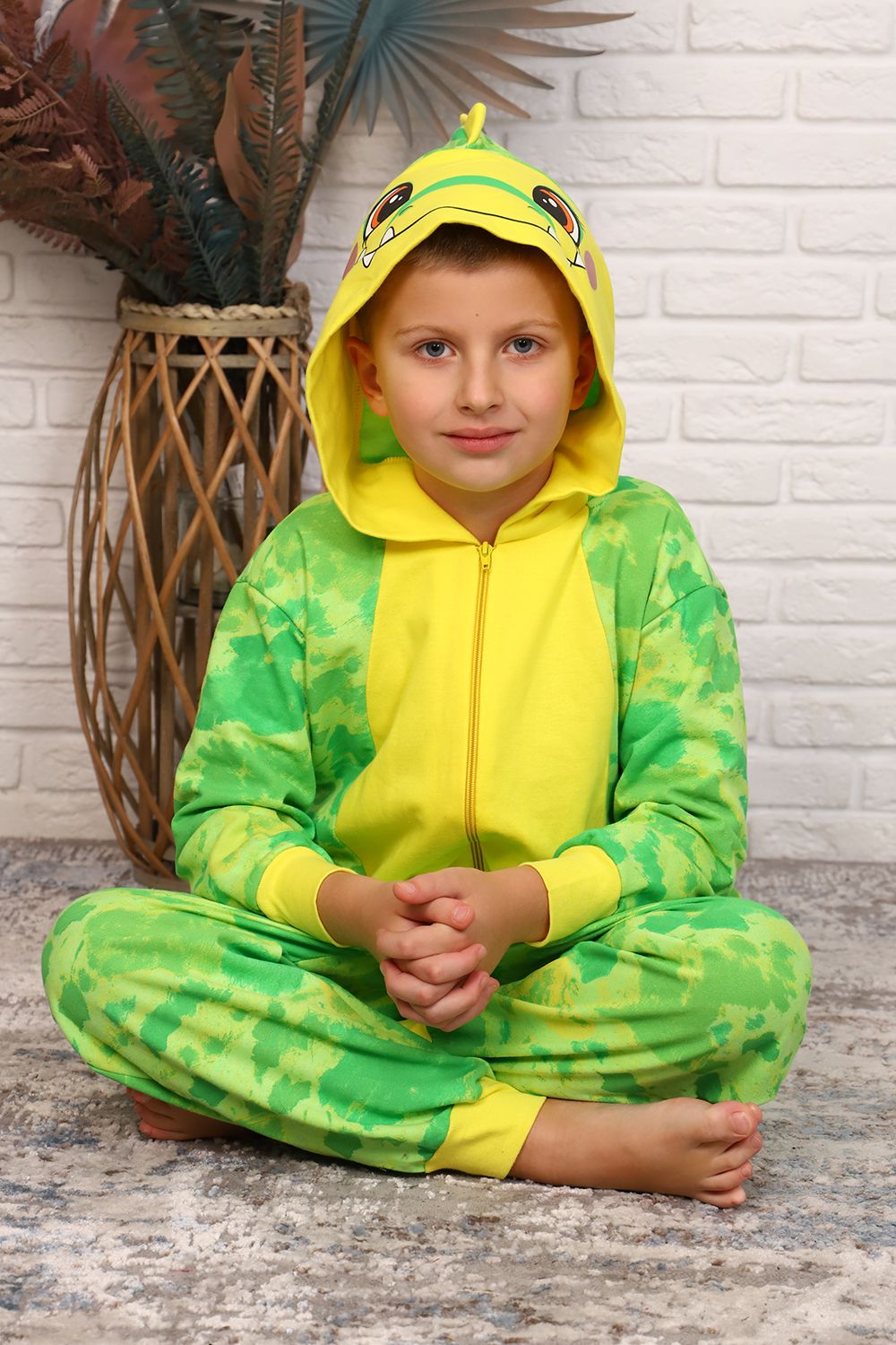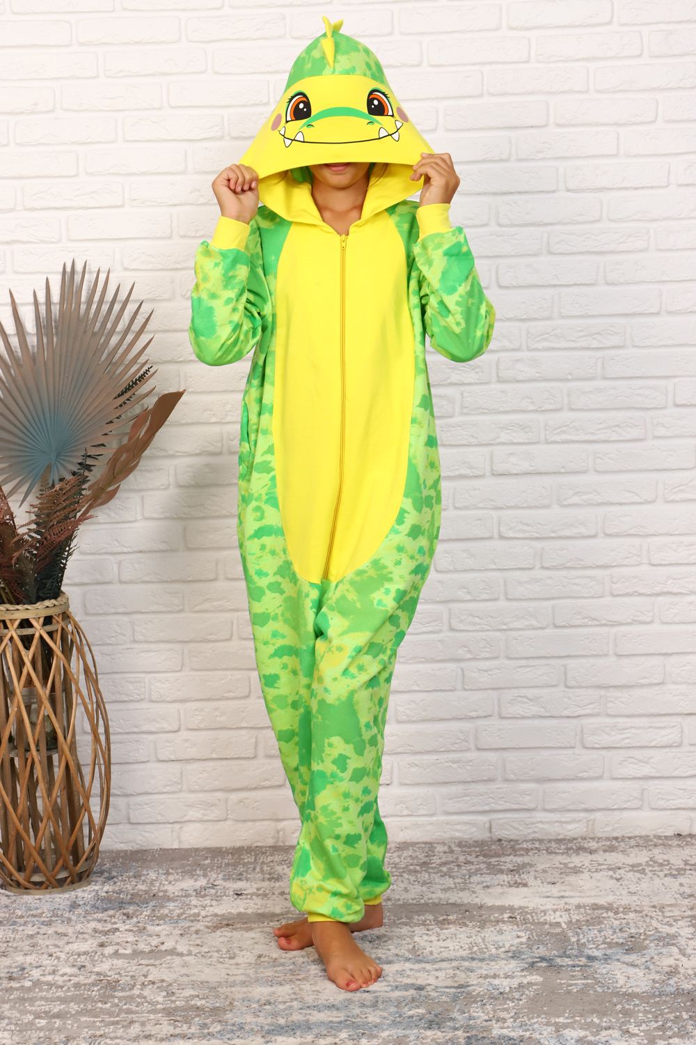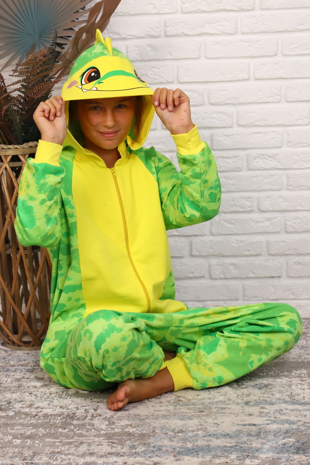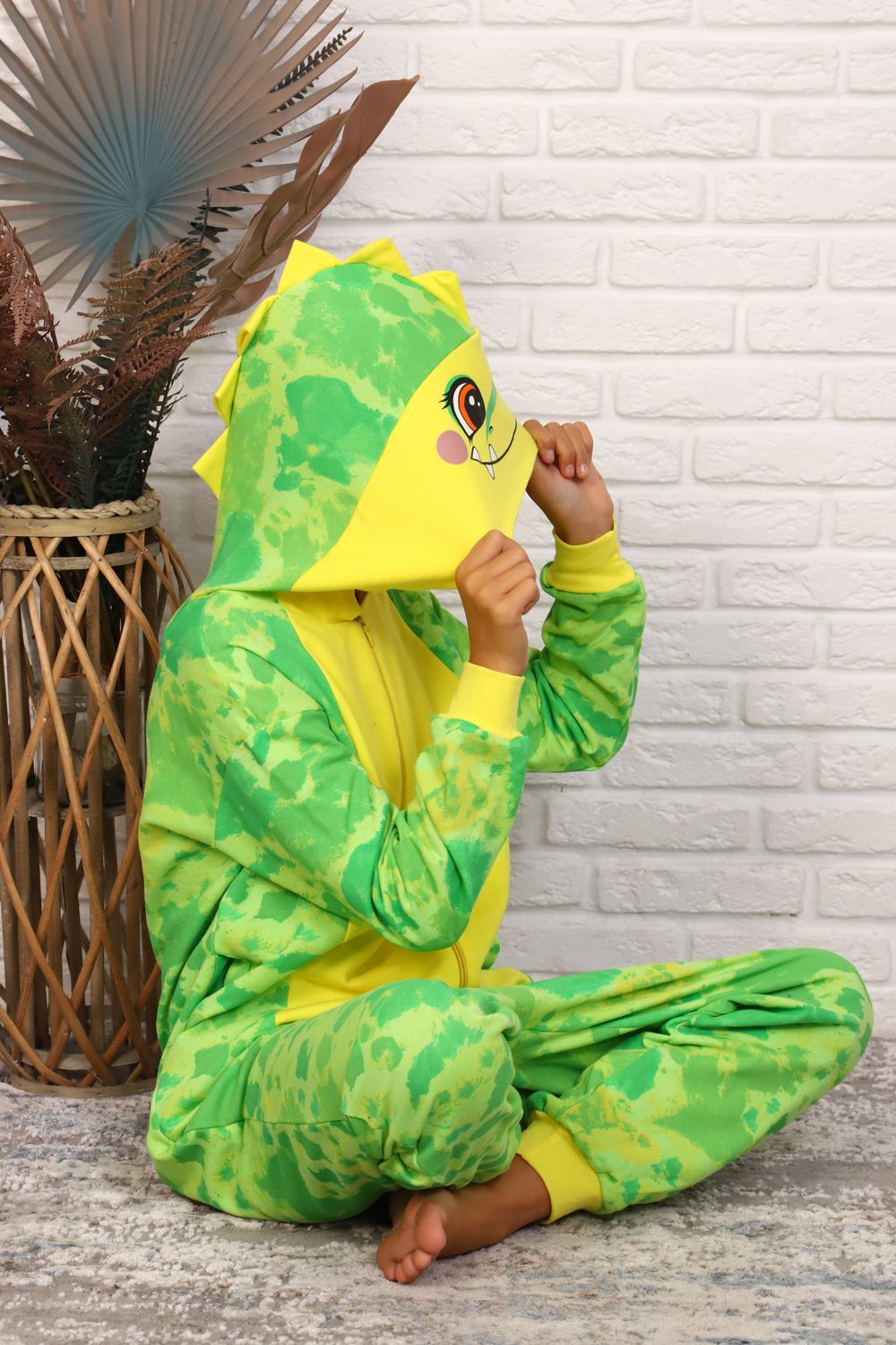 Комбинезон-кигуруми "Динозаврик" выполнен из футера с начесом (100% хлопок). Это лучший выбор для крутой вечеринки, повседневной одежды и даже для сна. Комбинезон изготовлен из теплого материала, который легко стирается, не линяет, не теряет цвет и классно выглядит в течение долгого времени. Застегивается спереди на молнию. За счет своего свободного кроя не сковывает движений. Очень теплый, мягкий, оригинальный и веселый комбинезон.