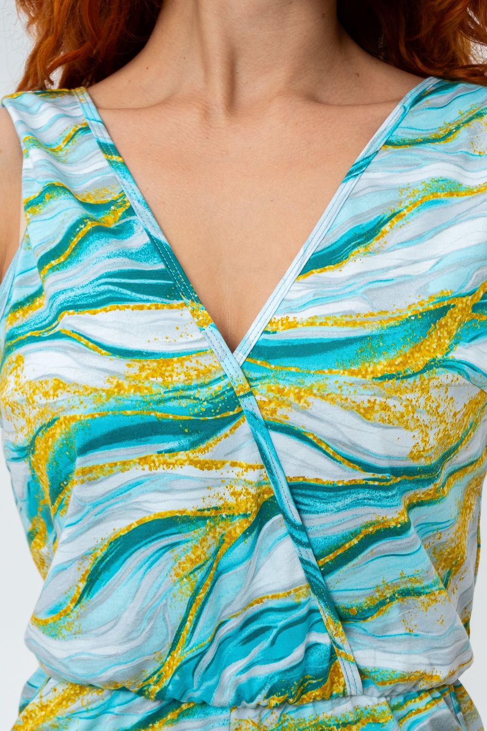 Стильный и универсальный элемент летней одежды - комбинезон с шортами. Верх комбинезона соединён с шортами, тем самым создаётся непрерывный образ. Передняя и задняя части верха комбинезона состоят из двух отдельных элементов, которые соединены на запах, образуя элегантный V-образный вырез. По линии талии для удобства вшита резинка. Шорты свободные, с боковыми карманами. Надевайте его на пляж, носите с топом или купальником. Меняйте образ с помощью ремешков.