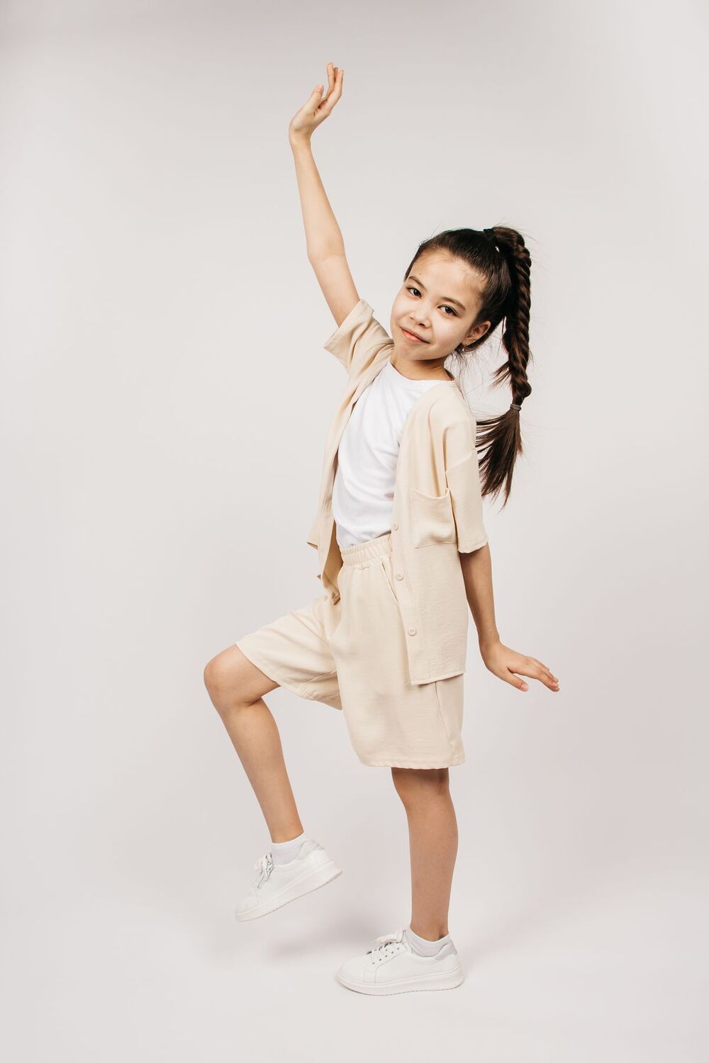 Нарядный костюм для девочек на лето выполнен из ткани сингапур. Комплект одежды состоит из рубашки прямого силуэта, плечо удлинено, с короткими рукавами и удлинёнными шортами на резинке. Блузка застегивается на пуговицы, имеет накладной карман. Свободные шорты оснащены двумя боковыми карманами. Крутой трикотажный костюм уместен летом, на день рождения, вечерние прогулки и фотосессию. Отлично подойдет на девочку подростка, как трендовый подростковый костюмчик. После стирки возможна усадка изделия. Состав: 92% полиэстер, 8% эластан. Плотность 170 гр.