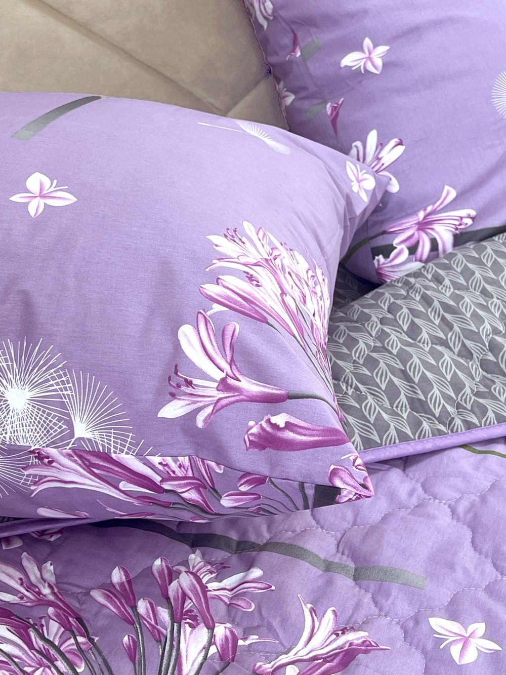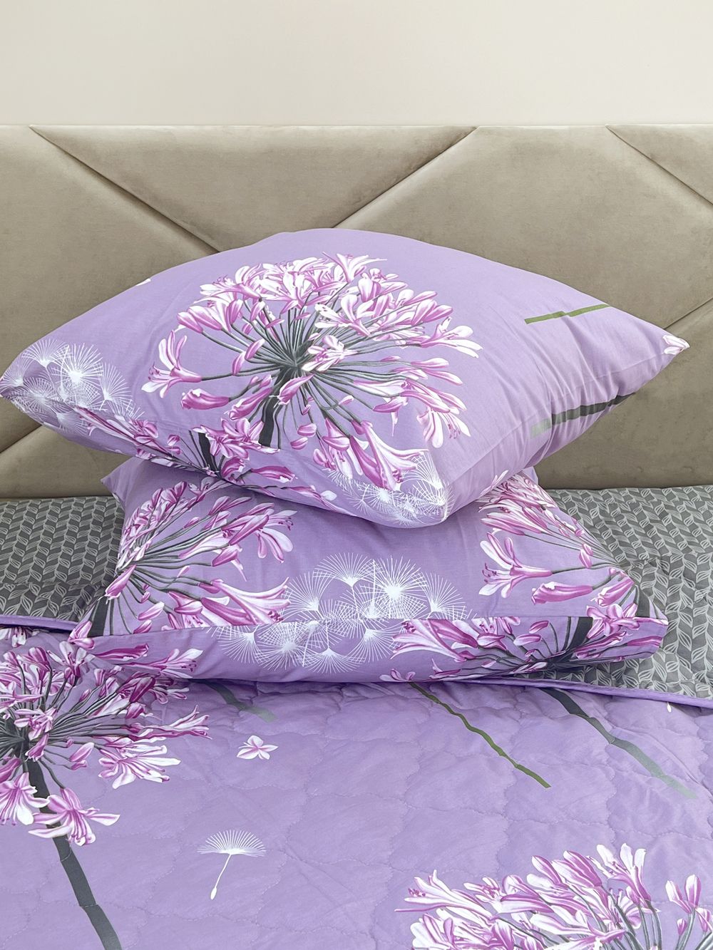 Края одеяла обработаны окантовочным материалом, наволочки клапан